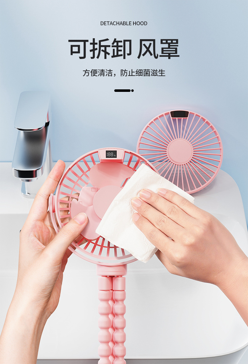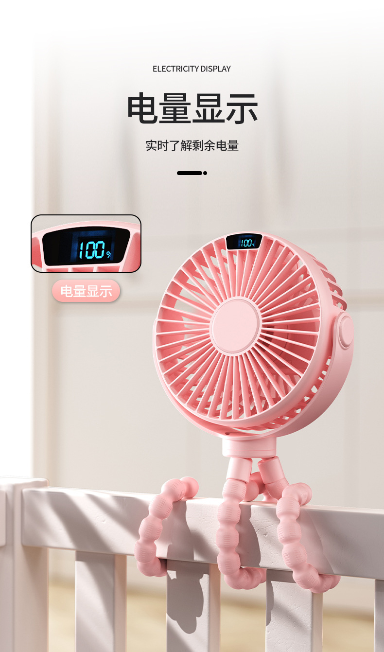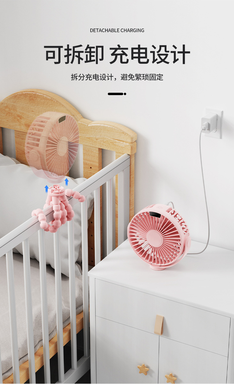 New Stroller Fan USB Charging Student Dormitory Mute Wind Portable and Versatile Desktop Small Fan