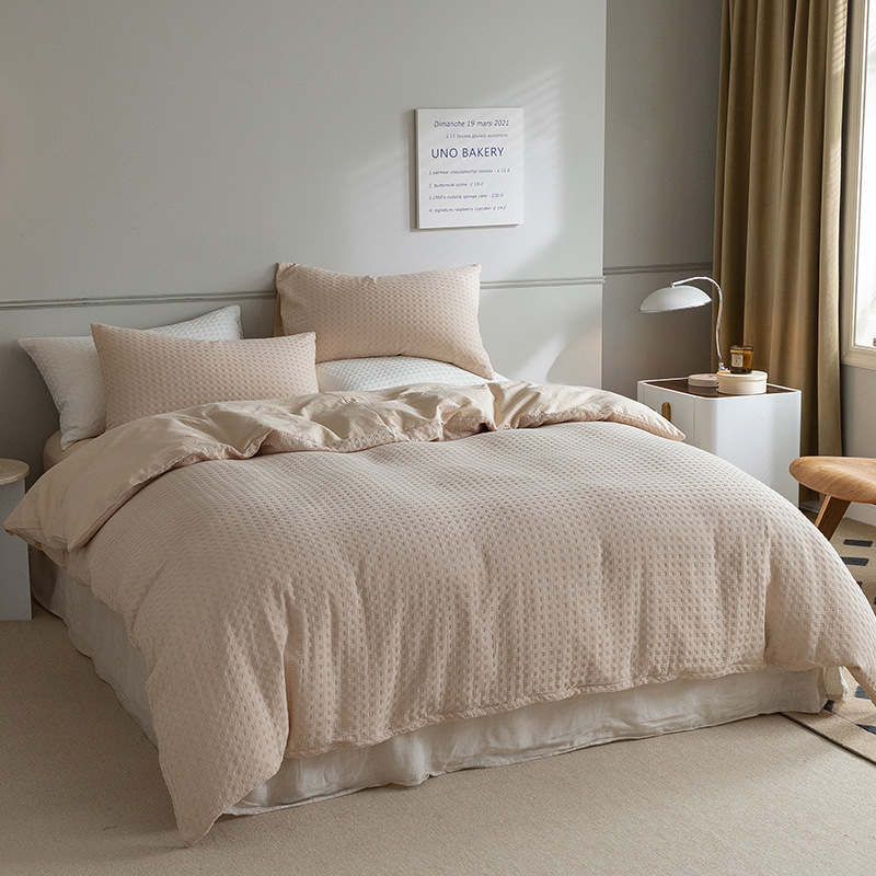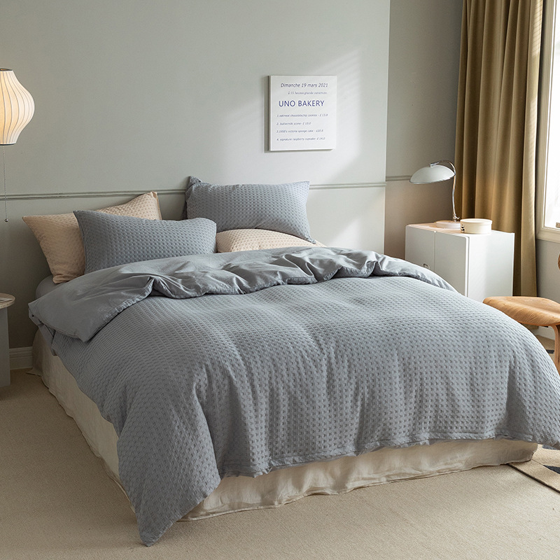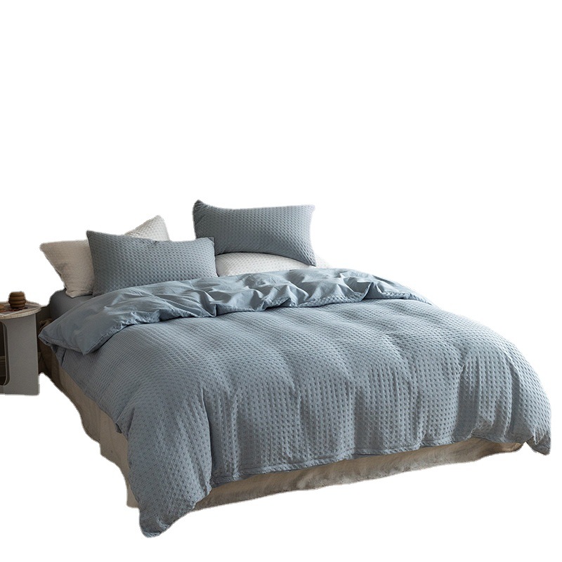 Factory Direct Sales Four-Piece Waffle Bed Set All Cotton Pure Cotton 100S Washed Cotton Duvet Cover Bed Sheet Fitted Sheet Three-Piece Set
