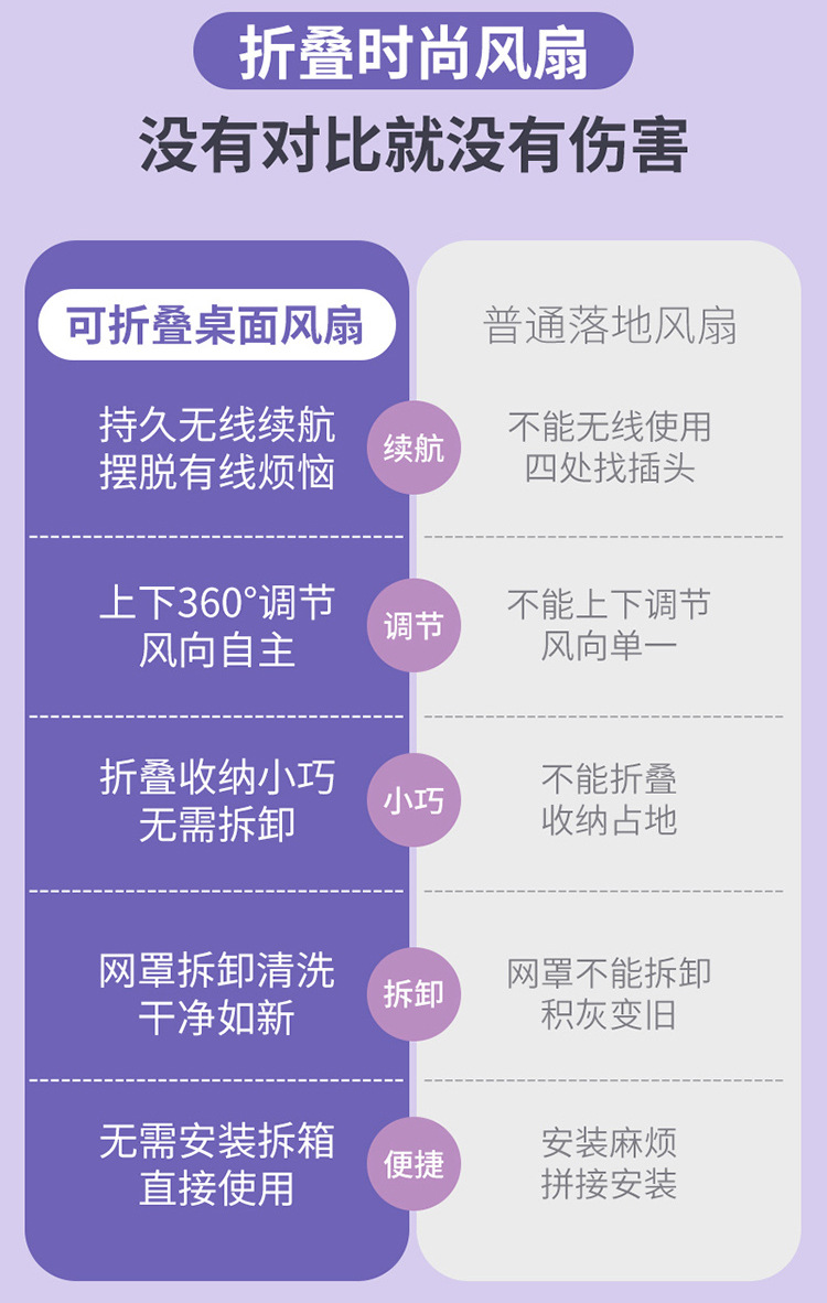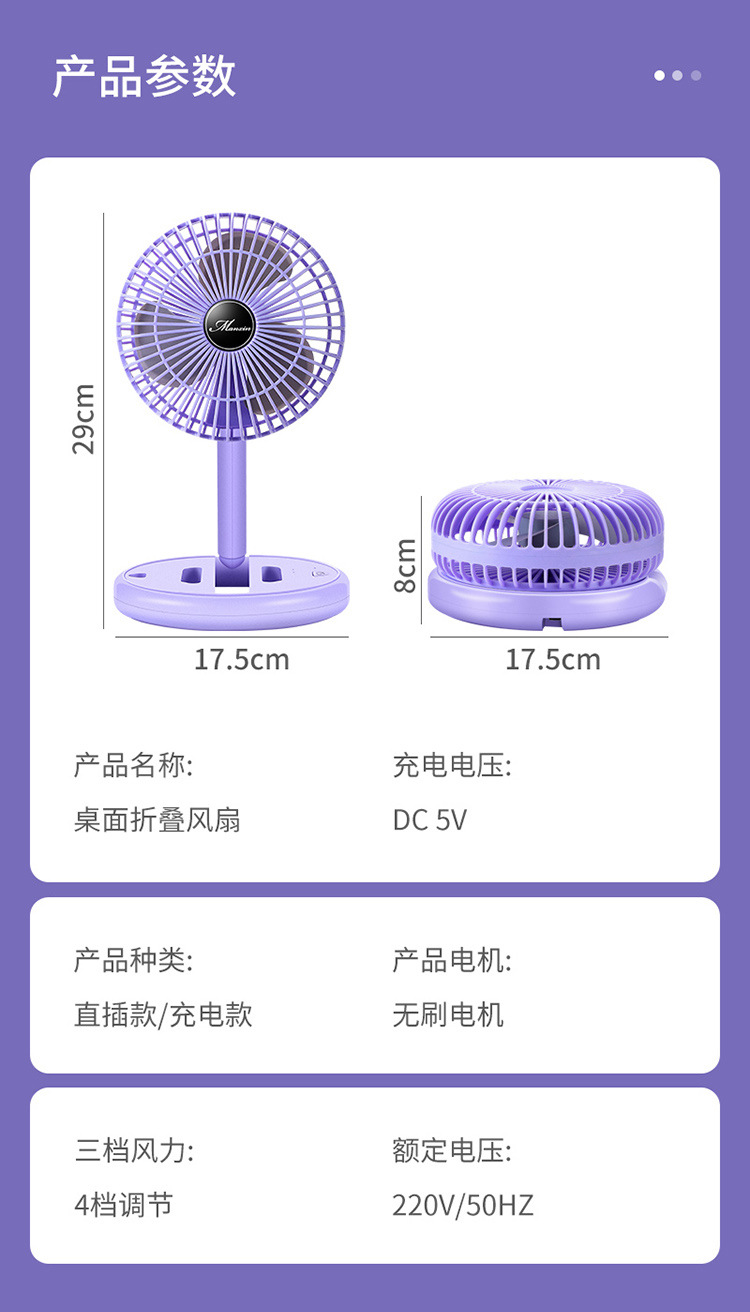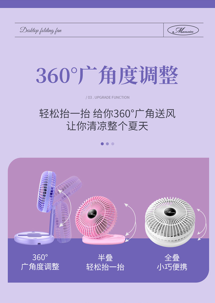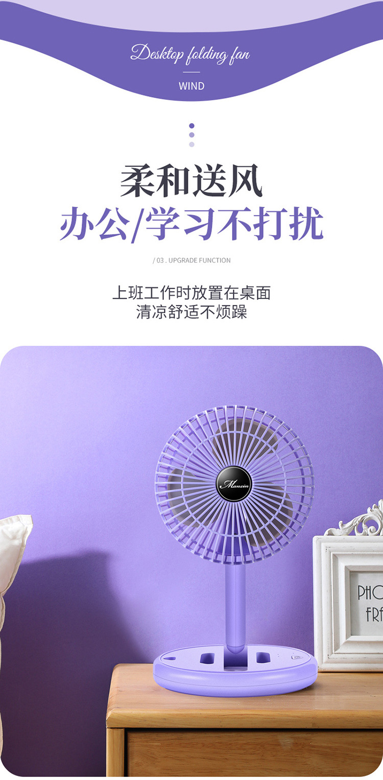 Desktop Folding USB Rechargeable Electric Fan Ultra-Quiet Student Dormitory Office Home Desktop Fan Portable