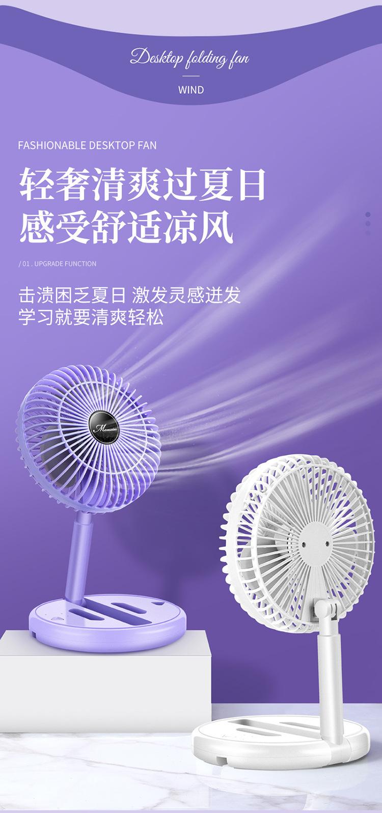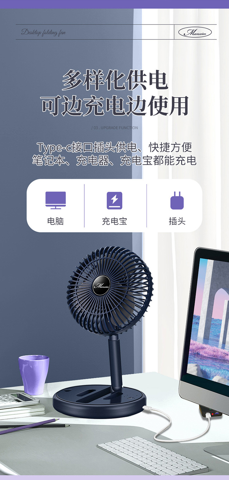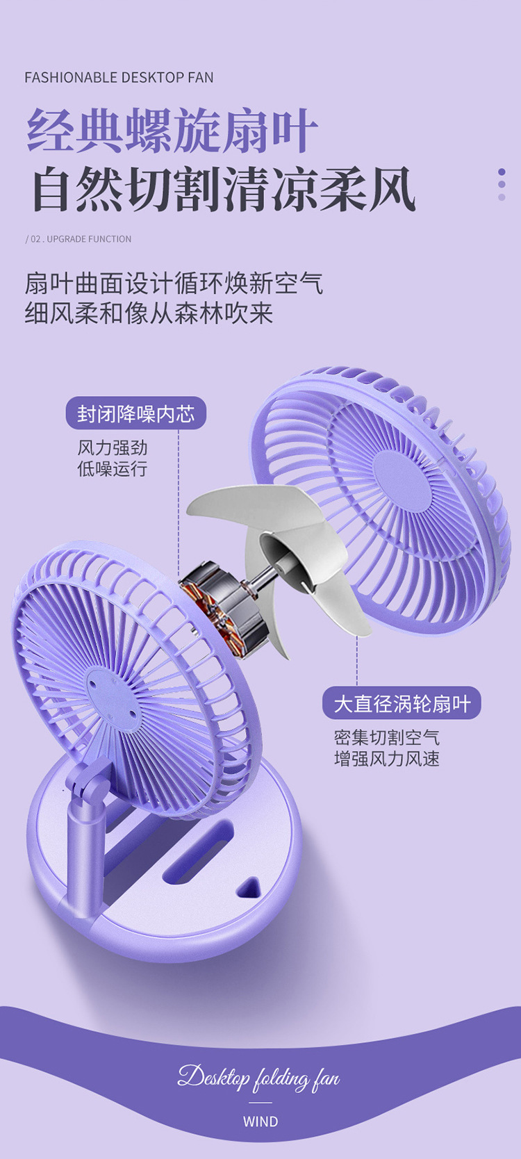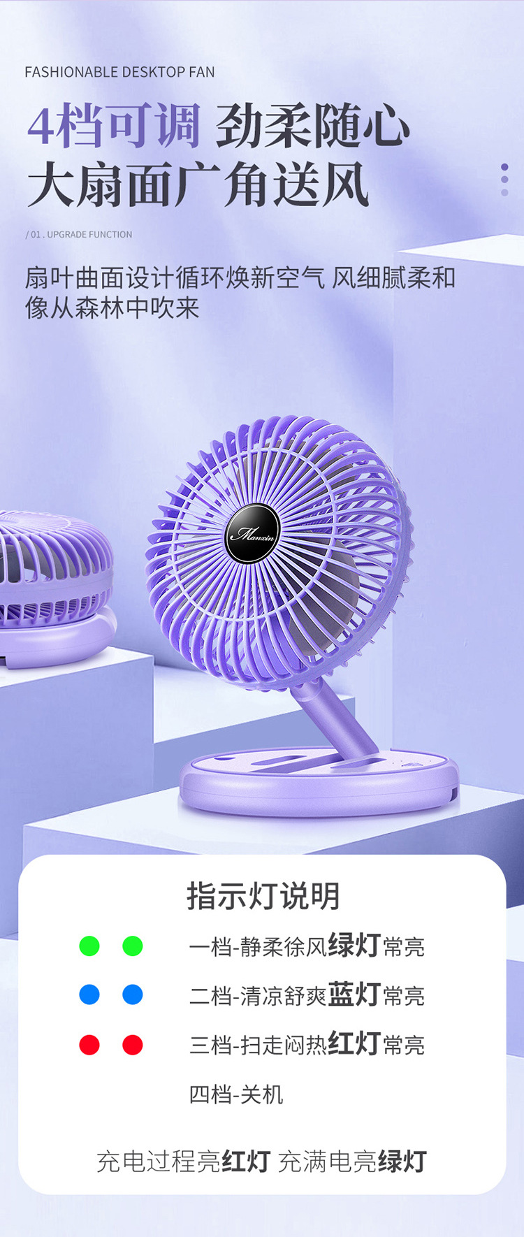 Desktop Folding USB Rechargeable Electric Fan Ultra-Quiet Student Dormitory Office Home Desktop Fan Portable