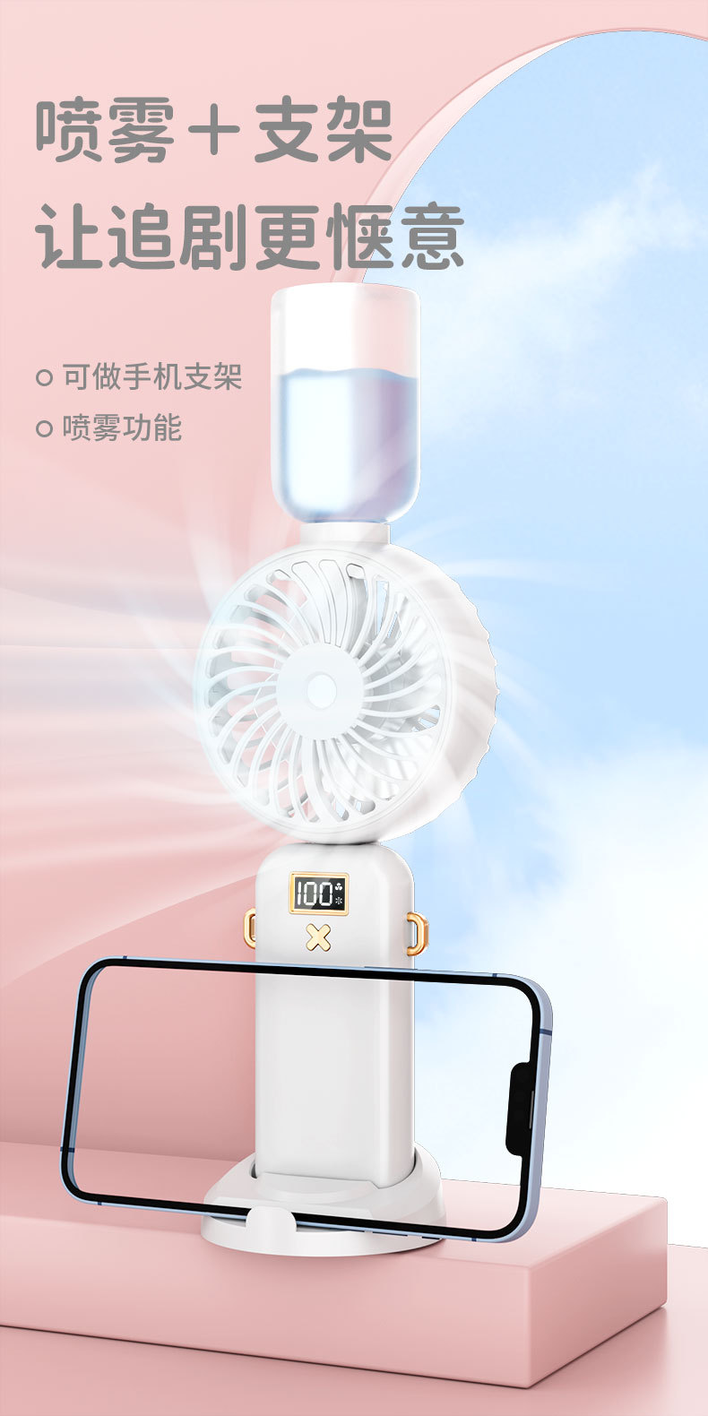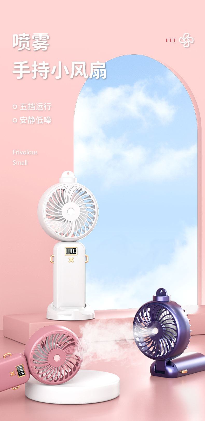 2023 Mini Folding Handheld Digital Display Fan Aromatherapy Spray Thermantidote Humidifier Desktop Halter Little Fan Wholesale