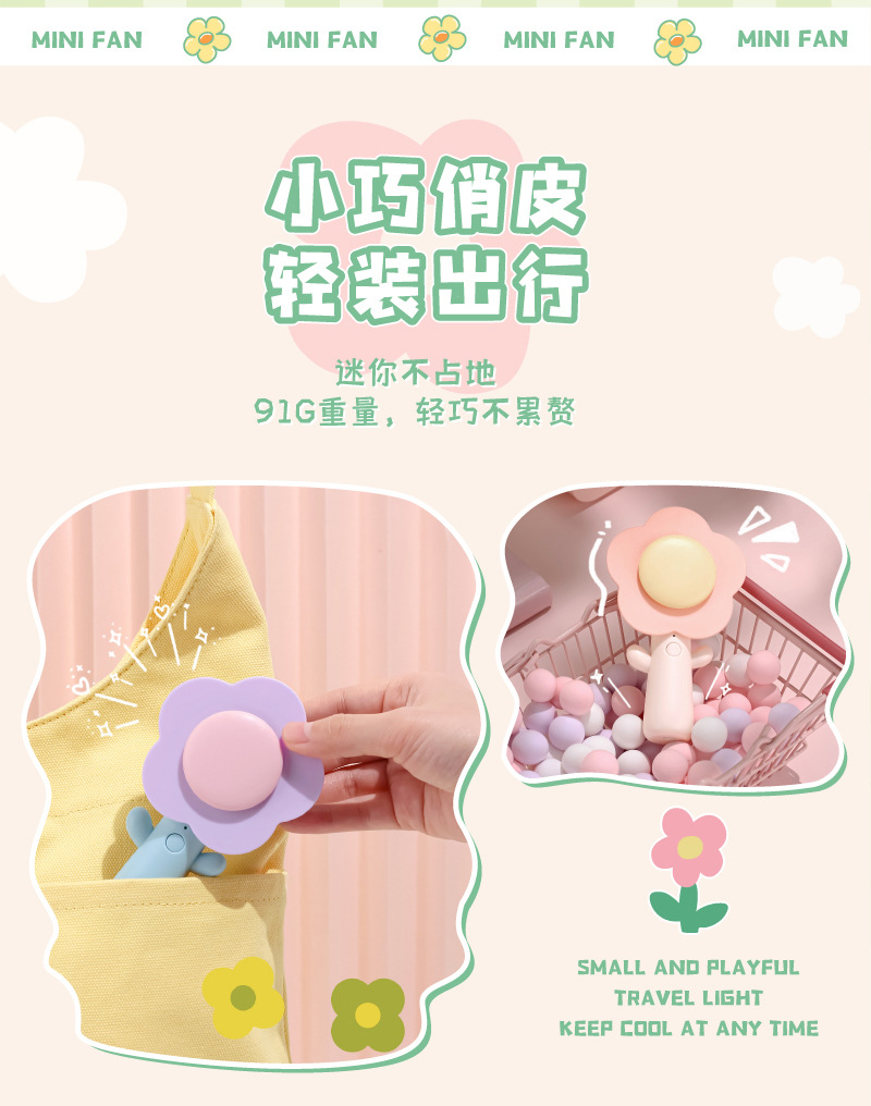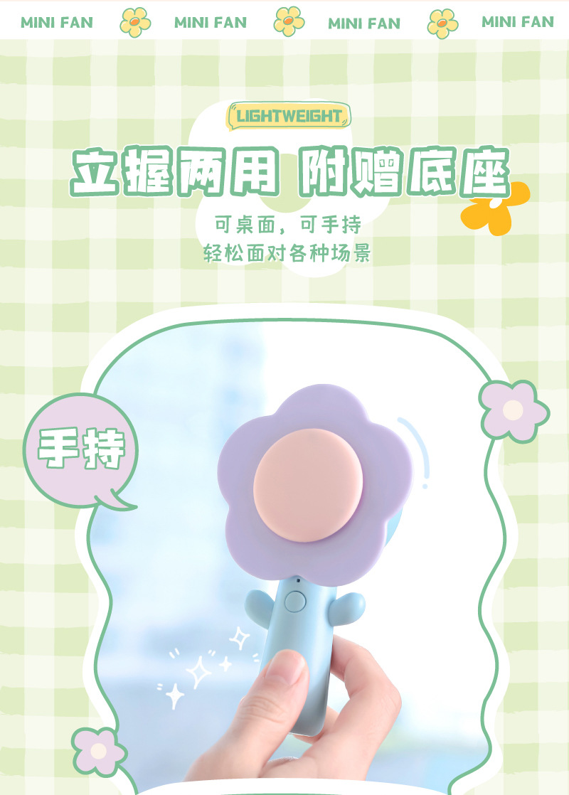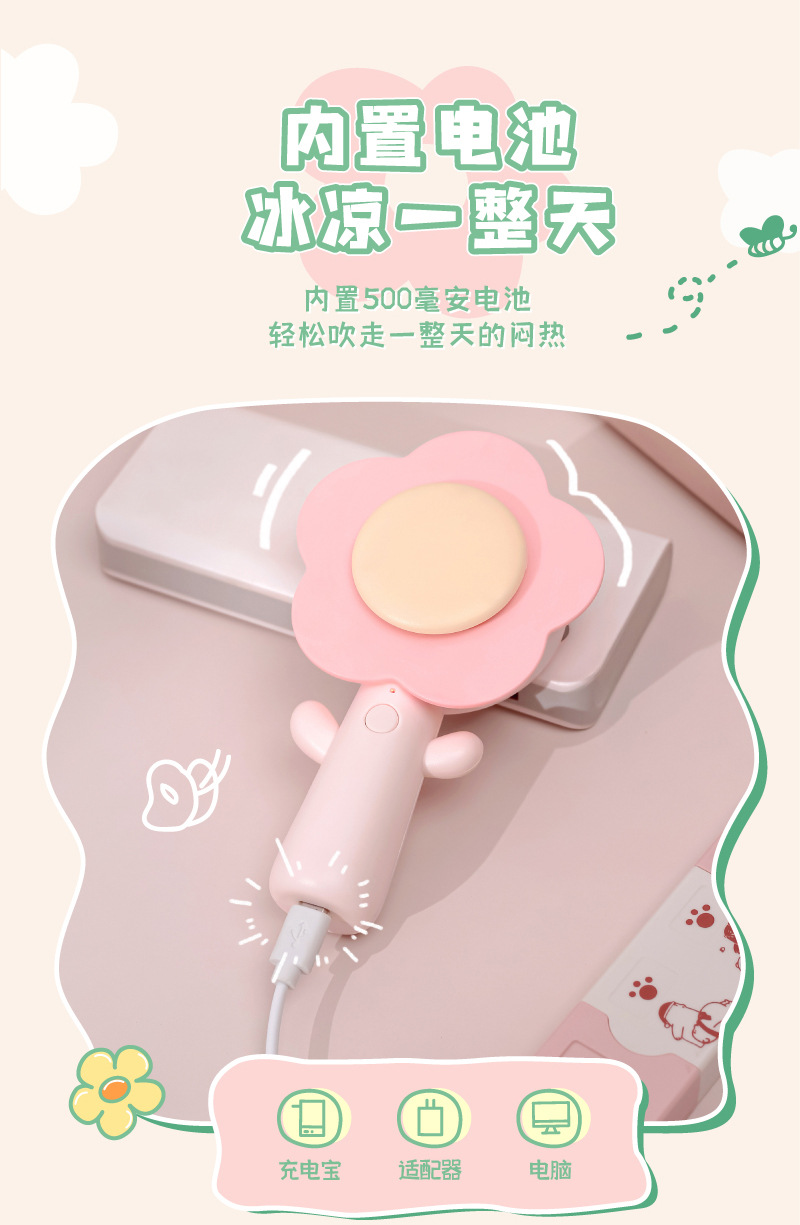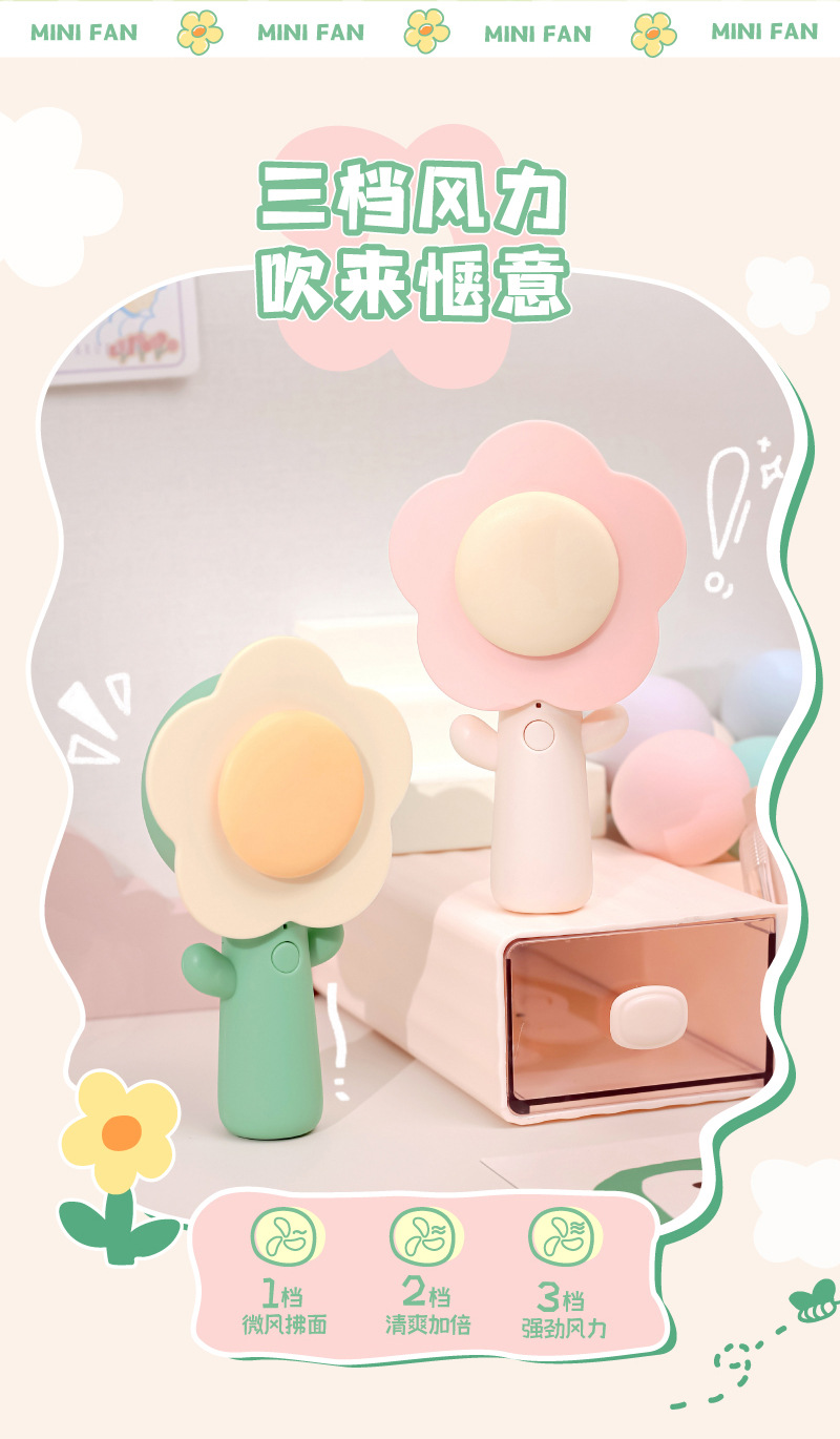 SOURCE Factory Creative Flower Flower Mini Fan Ins Handheld USB Charging Portable Desktop Desktop Fan
