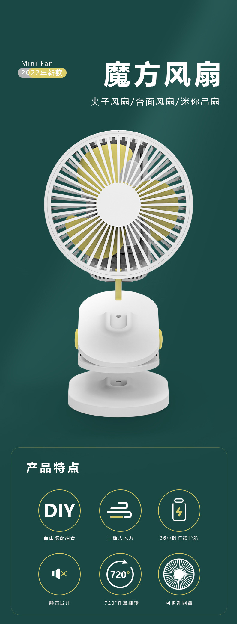 Little Fan New Cross-Border Student Dormitory Hanging Table Fan Mute Wind Mini Clip USB Charging