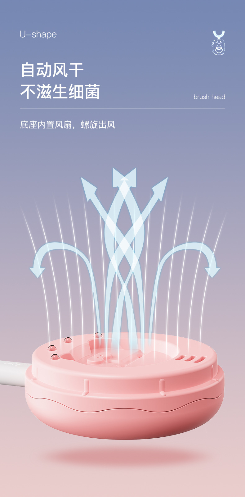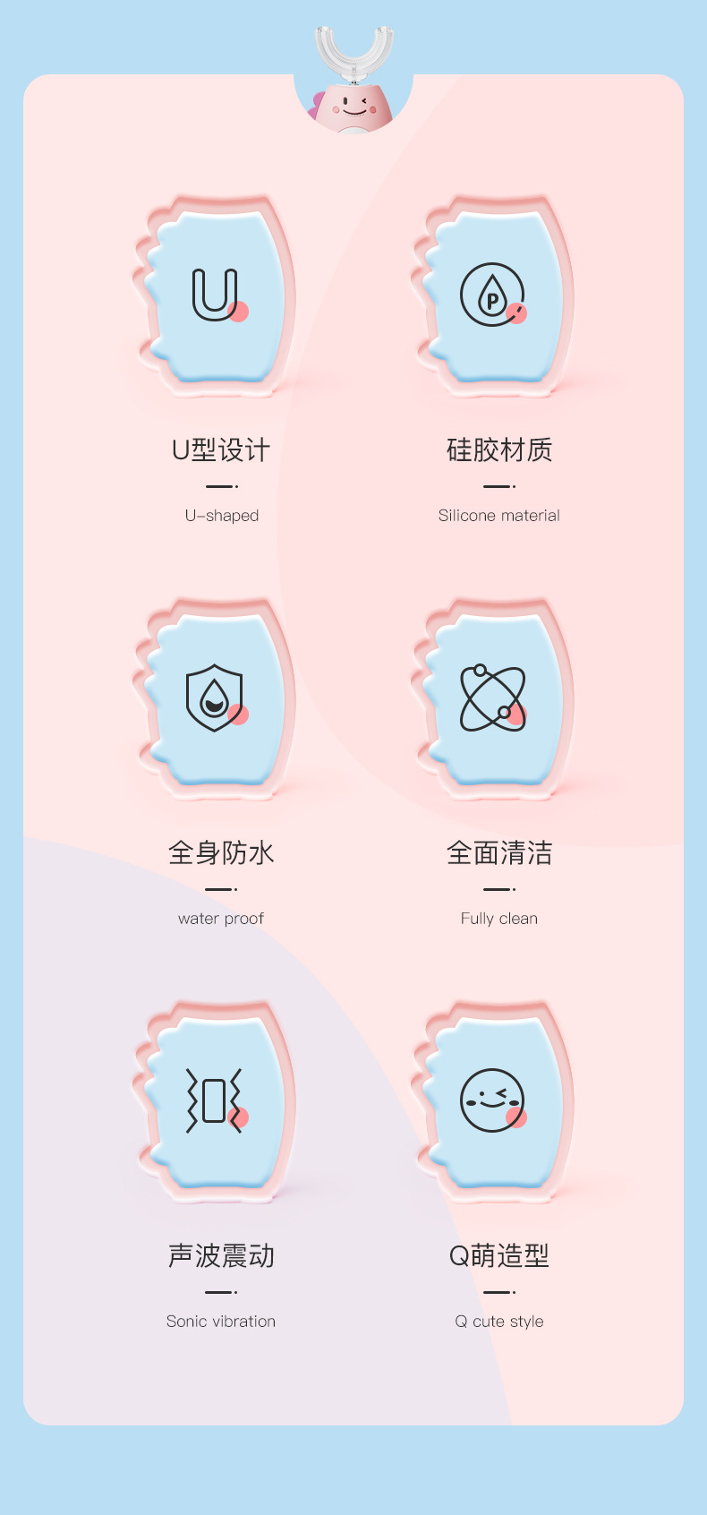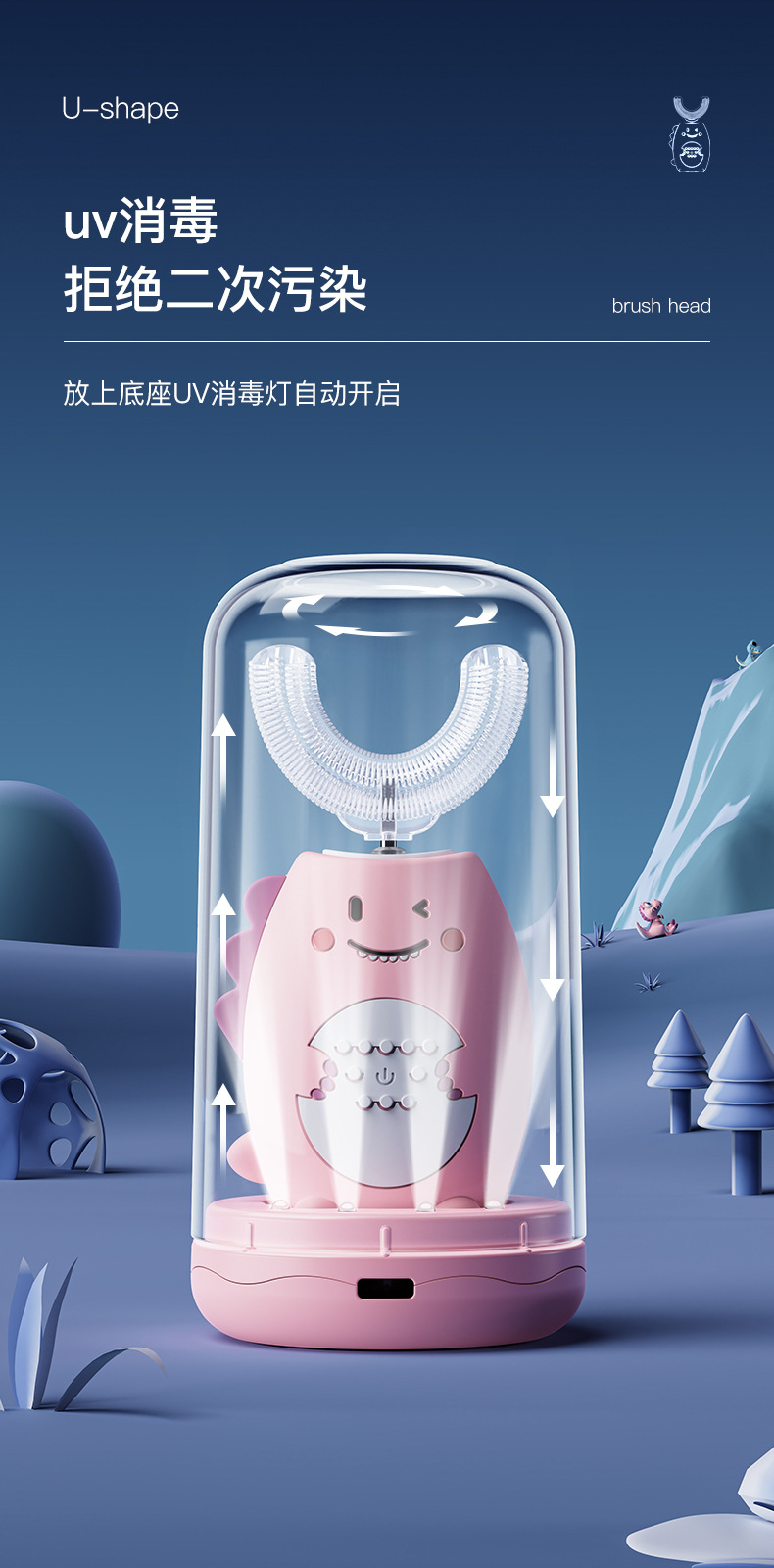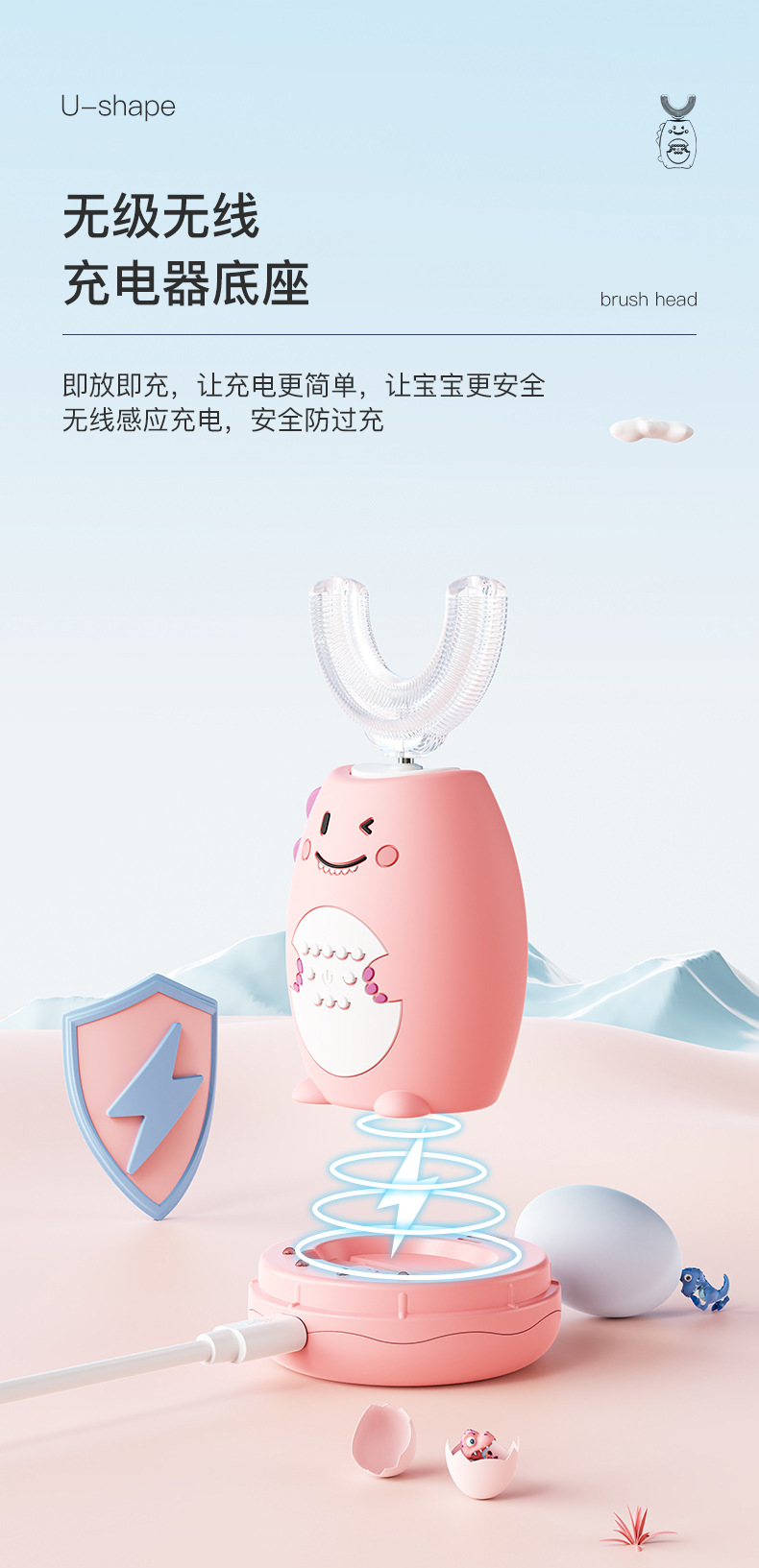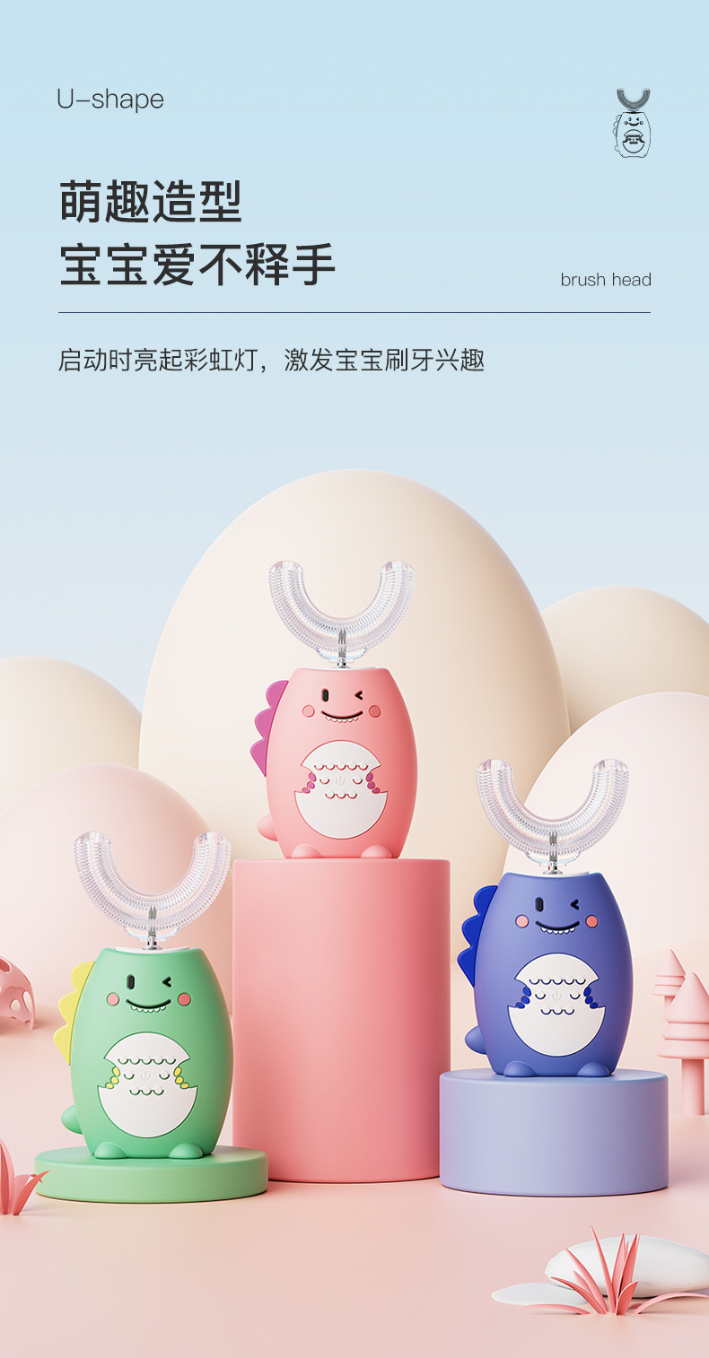U-Shaped Children's Electric Toothbrush Wireless Rechargeable Baby Nano Soft Hair Waterproof Toothbrush Tooth Cleaning Artifact