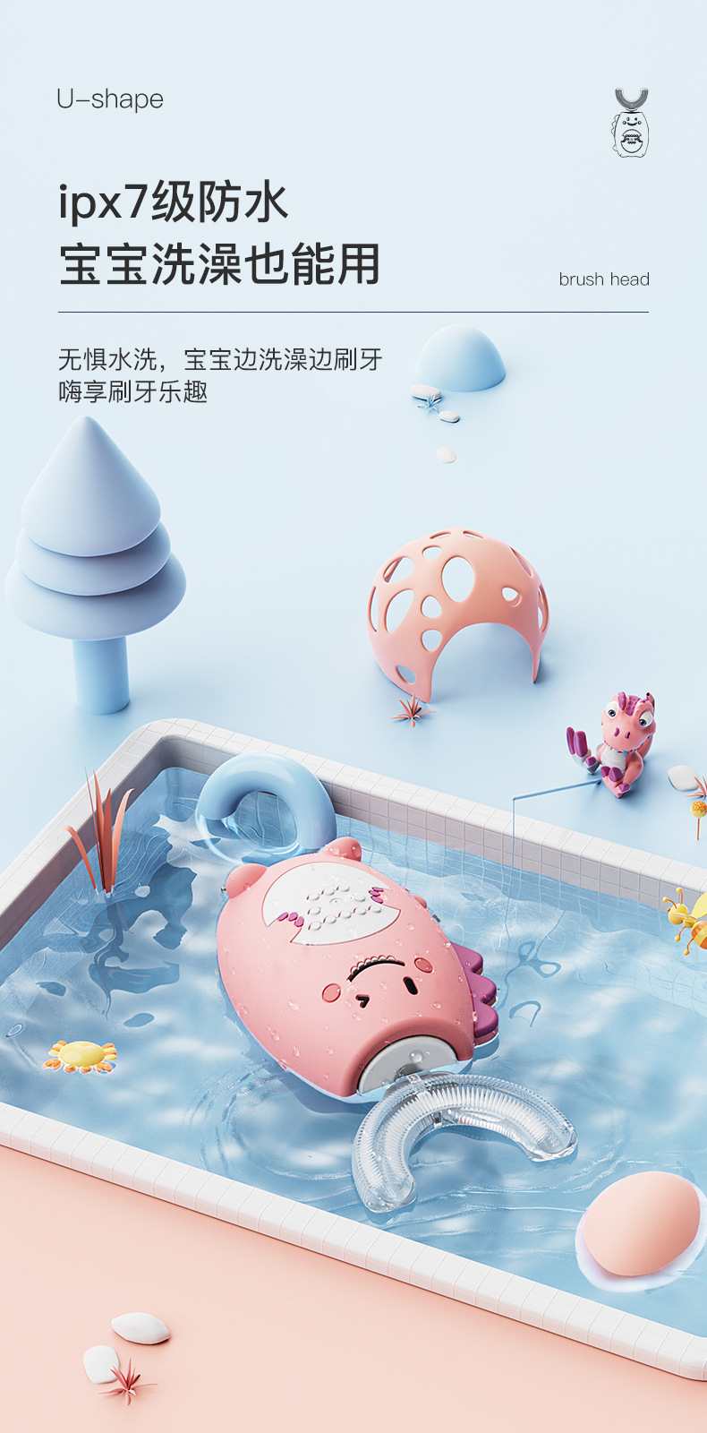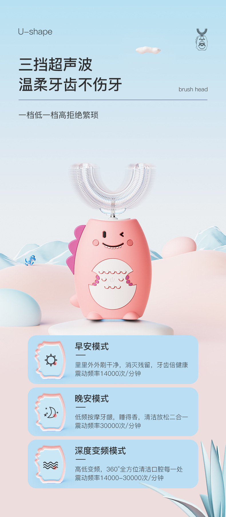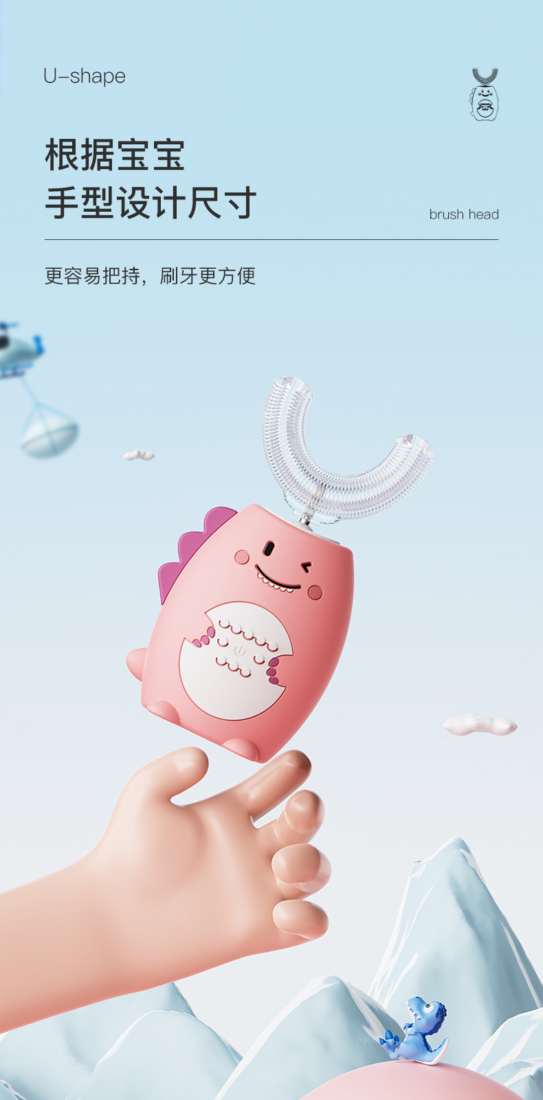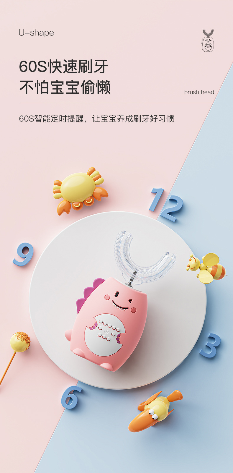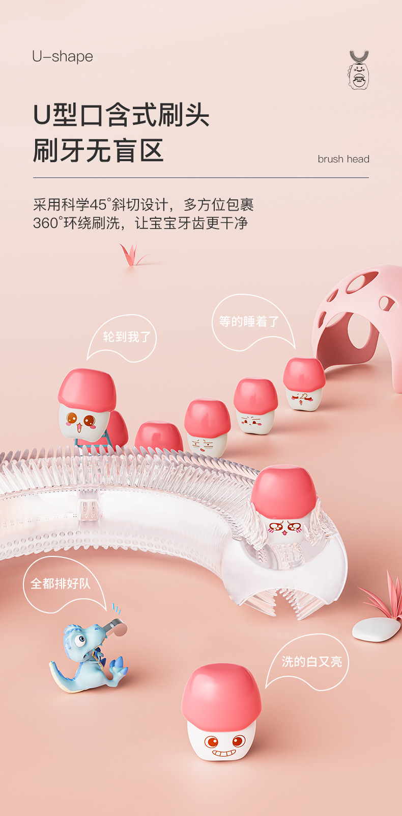 U-Shaped Children's Electric Toothbrush Wireless Rechargeable Baby Nano Soft Hair Waterproof Toothbrush Tooth Cleaning Artifact
