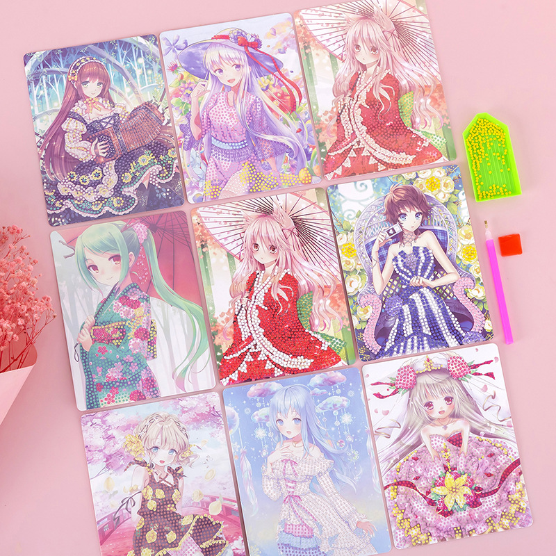 Set contents: 1 piece of high-definition painting stickers, 1 dotting plate, 1 jar of jelly glue, 1 dotting pen, 1 set of diamond bag