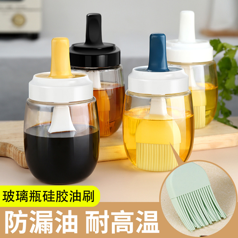 Glass with Silicone Bruch Head Oil Pots High Temperature Resistant Oil Brush Kitchen Pancake Barbecue Brush Dual-Use Household Oil Bottle Brush