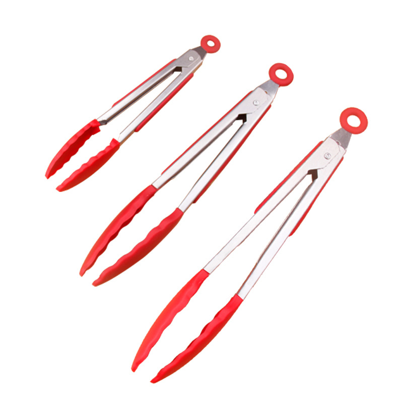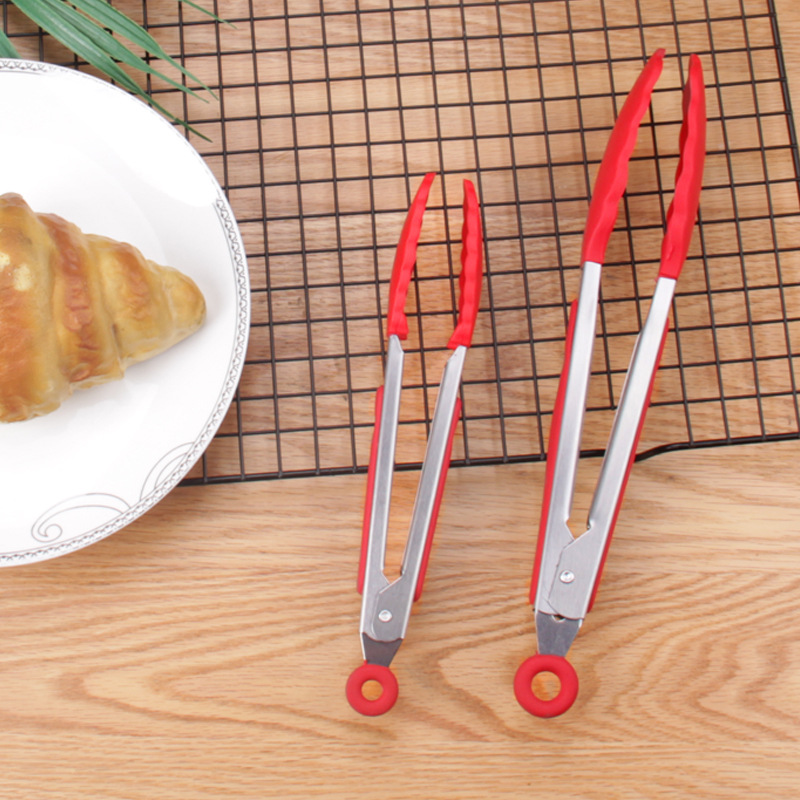 Silicone Handle Food Clip Steak Barbecue BBQ Clamp Bread Clip Non-Slip High Temperature Resistant Stainless Steel Clip Baking Tool