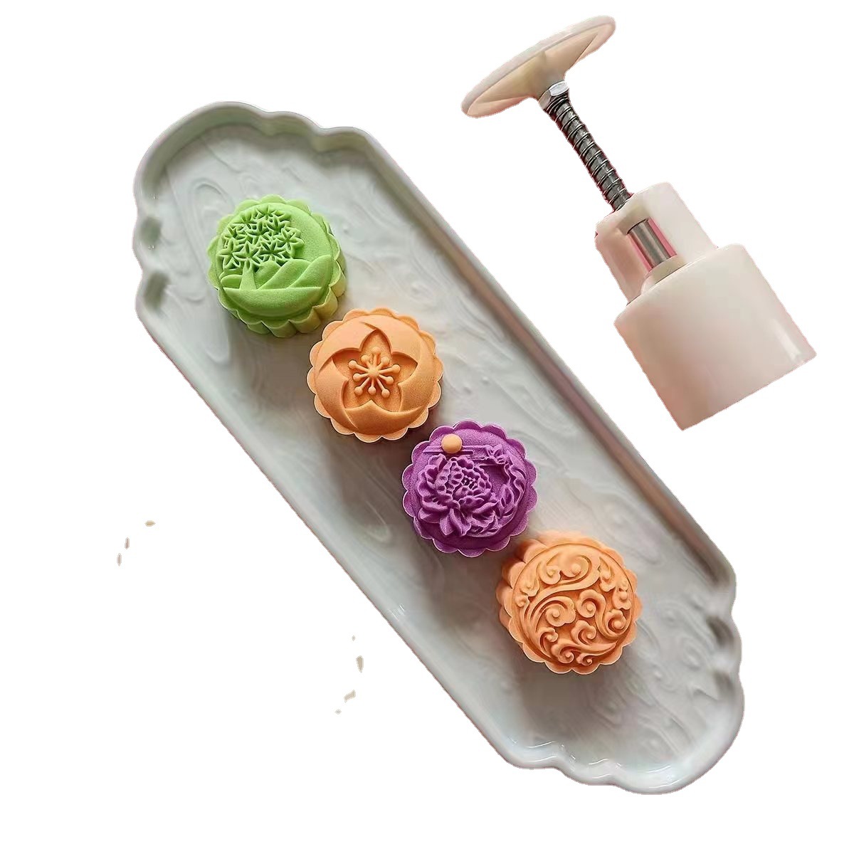 75G Moon Cake Mold Household Embossed Hand Pressure Green Bean Cake Mold Cold Cover Pastry Mold AMW Baking
