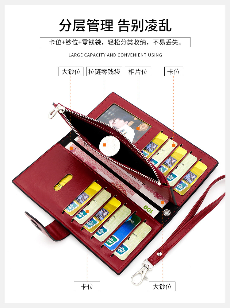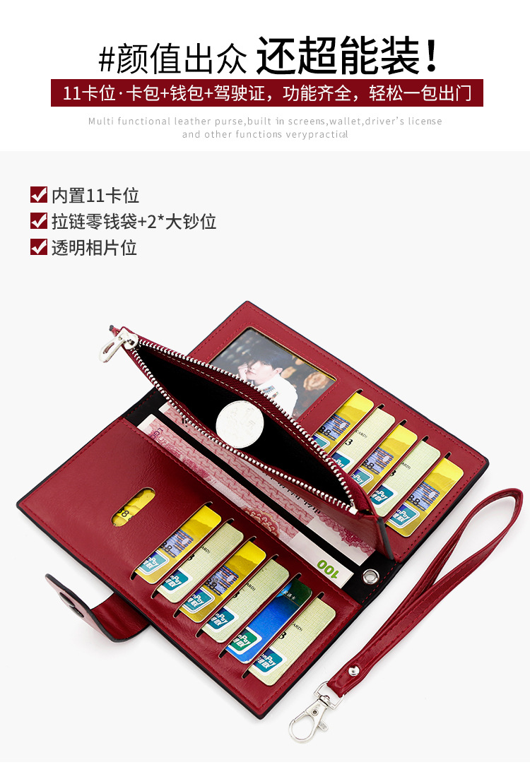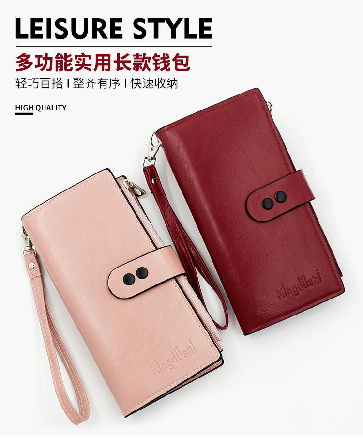 fresh long women's loose-leaf wallet multiple card slots document package clutch personality buckle large capacity wallet
