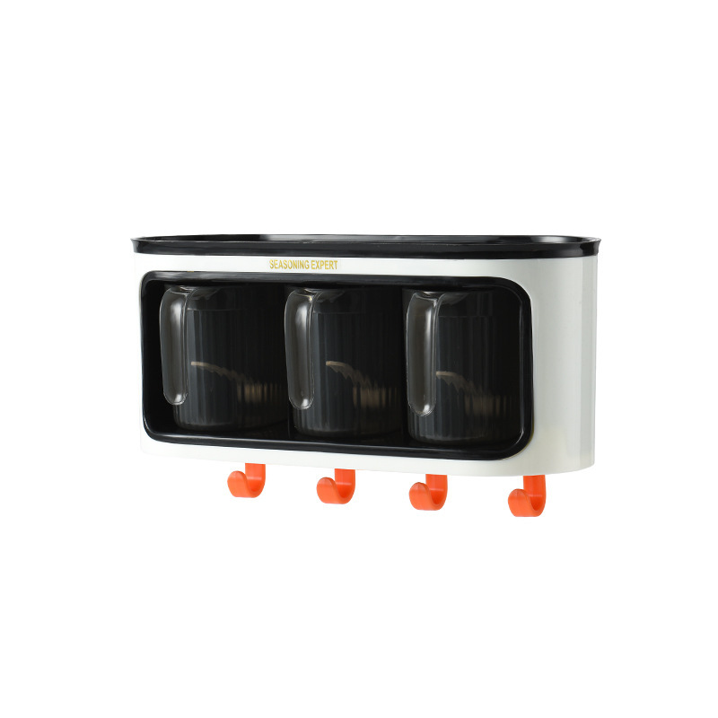 Drawer-Style Kitchen Wall-Mounted Seasoning Jar Combination Suit Salt with Handle MSG Seasoning Storage Box Plastic Tape Spoon