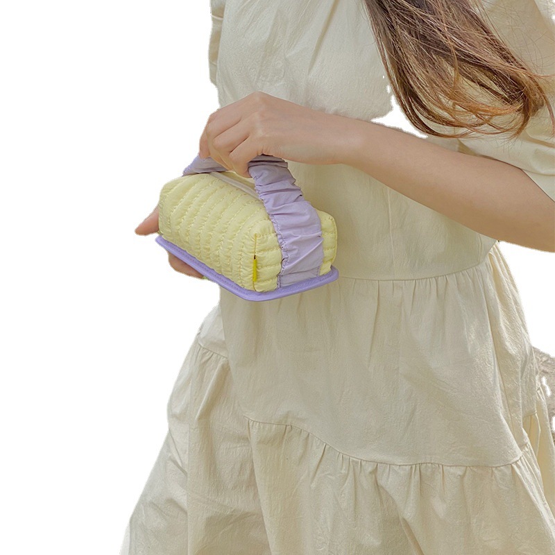 Internet Celebrity Toast Cosmetic Bag Cream Color Large Capacity Storage Bag Thickened Wash Bag Portable Contrast Color Wash Handbag