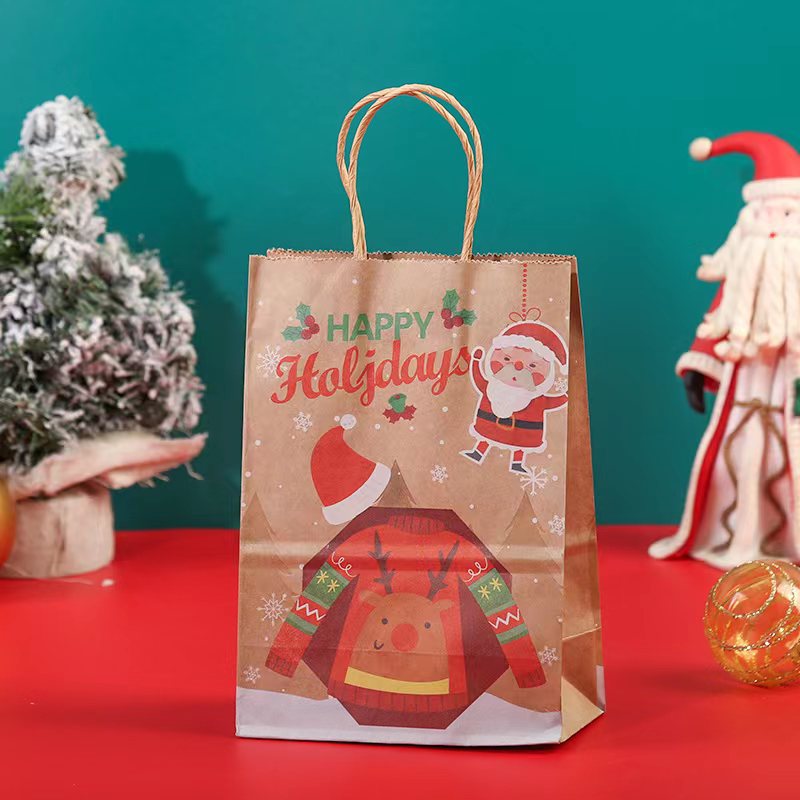 Amazon Special Cartoon Kraft Paper Christmas Elderly Portable Gift Bag Party Holiday Gift Bag Christmas Tree