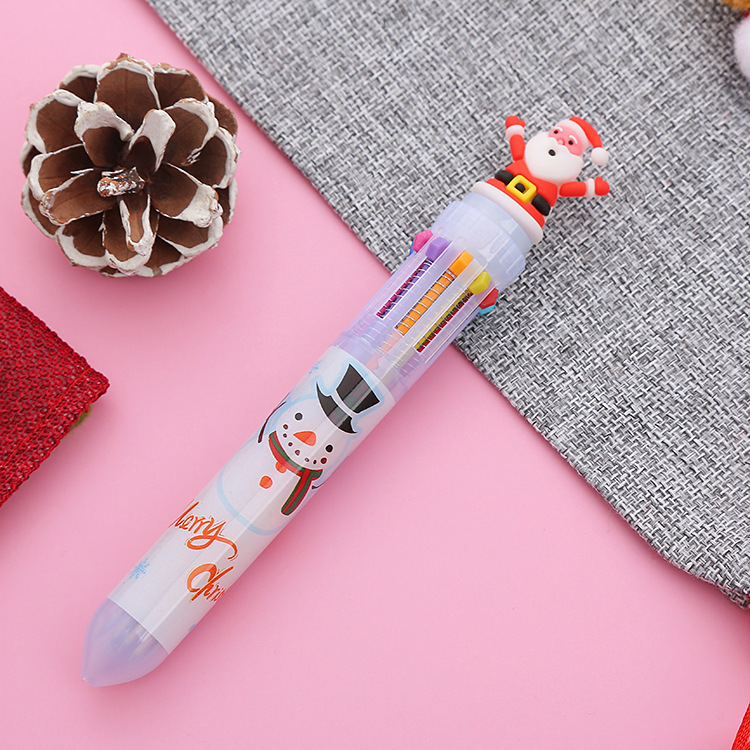 Christmas Ten-Color Ballpoint Pen Creative Stationery Color Mark Pen Cute Student Prize Gift Multi-Color Hand Account Pen