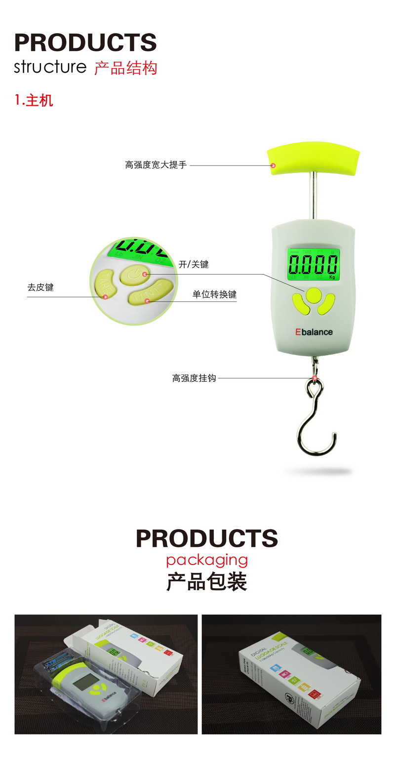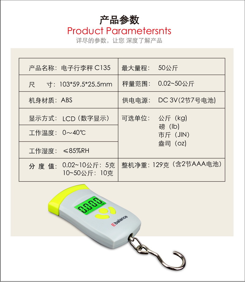 Scale range/minimum division: 0~10 kg/5 g; 10~50 kg/10 g