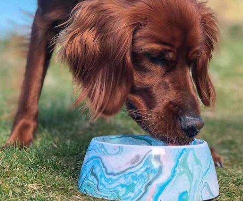 Colored marble patterned pet food and water bowls for cats and dogs