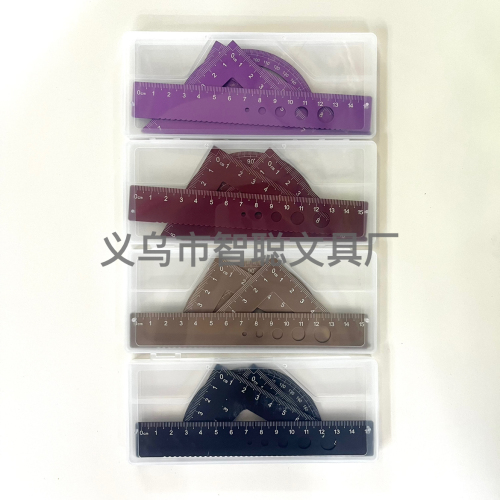 15cm aluminum ruler combination set 4-piece set 5-color ruler triangle semicircle student office