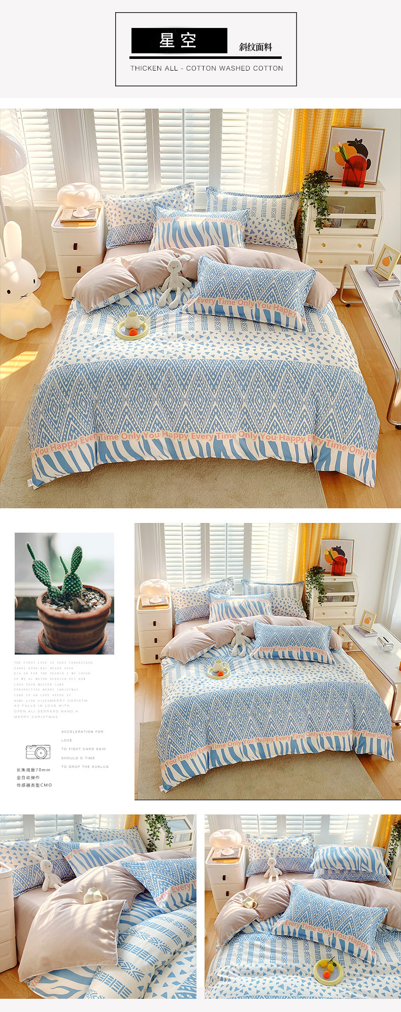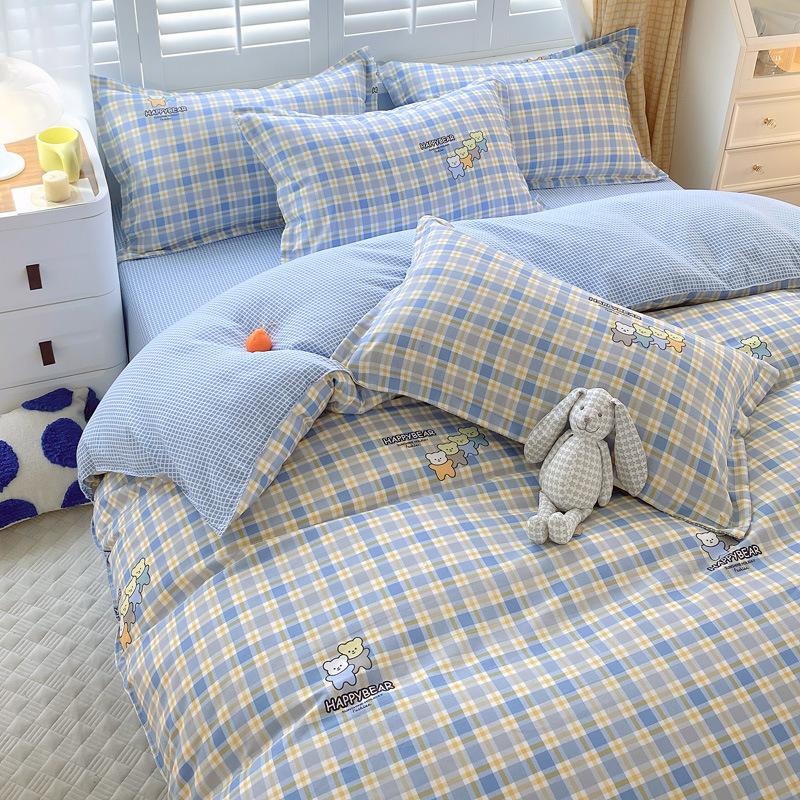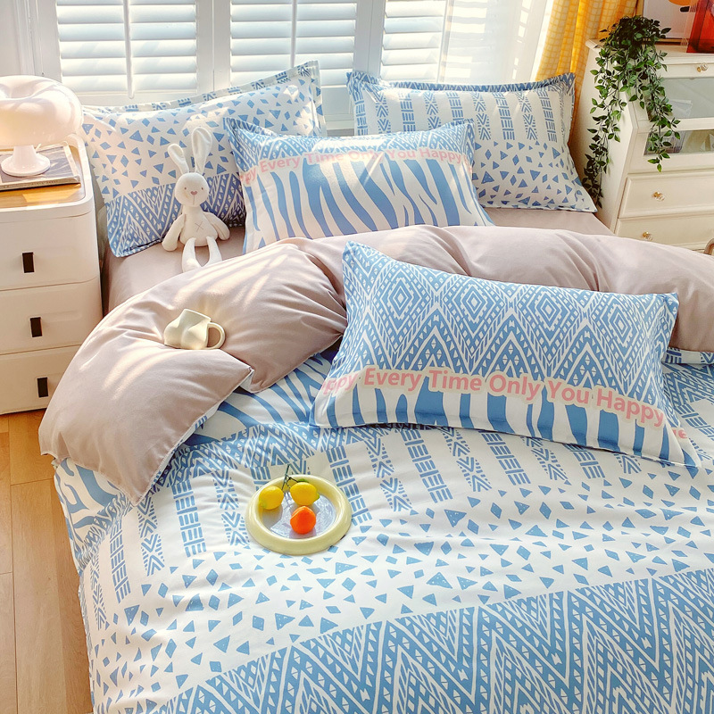 happy-blue: 1.5m bed sheet four-piece set (quilt cover 150*200)