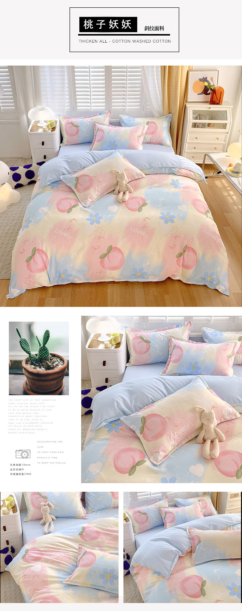 peach rabbit: 2.0m bed sheet four-piece set (quilt cover 200*230)