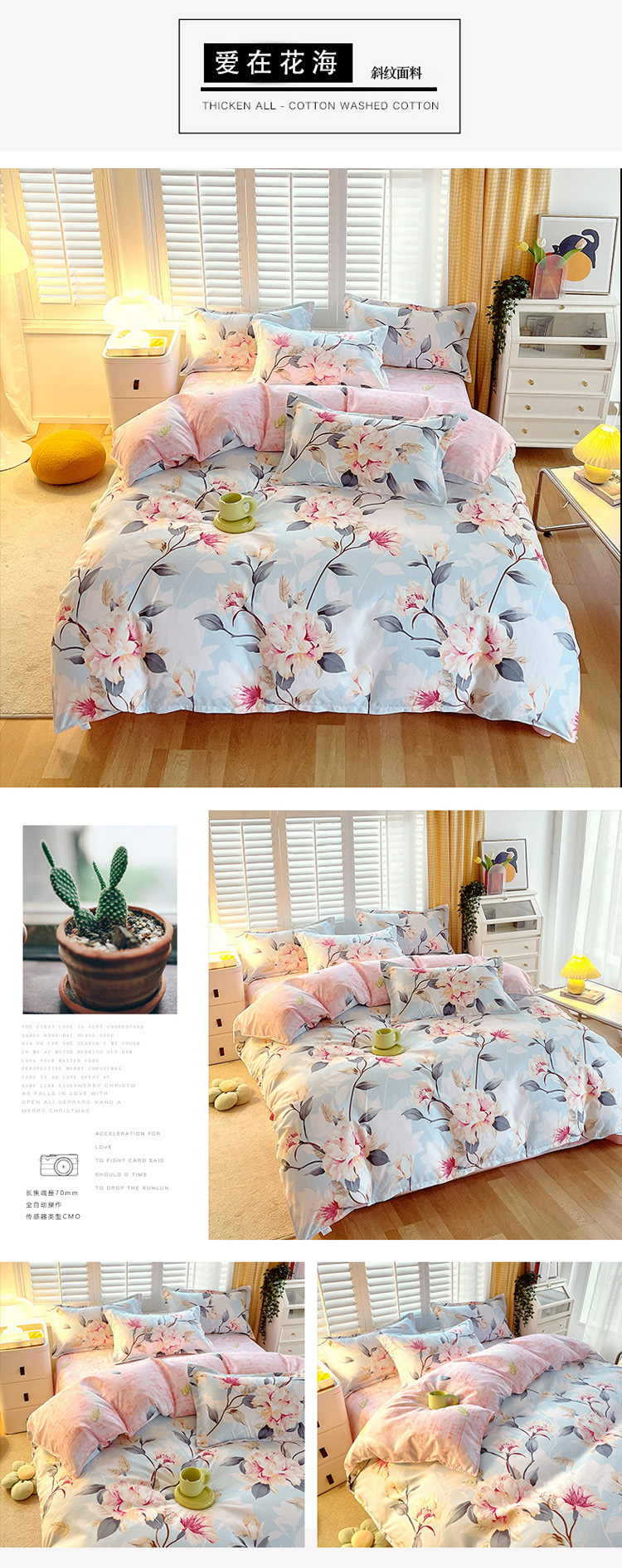 love in the flower sea: 1.8m bed sheet four-piece set (quilt cover 180*220)
