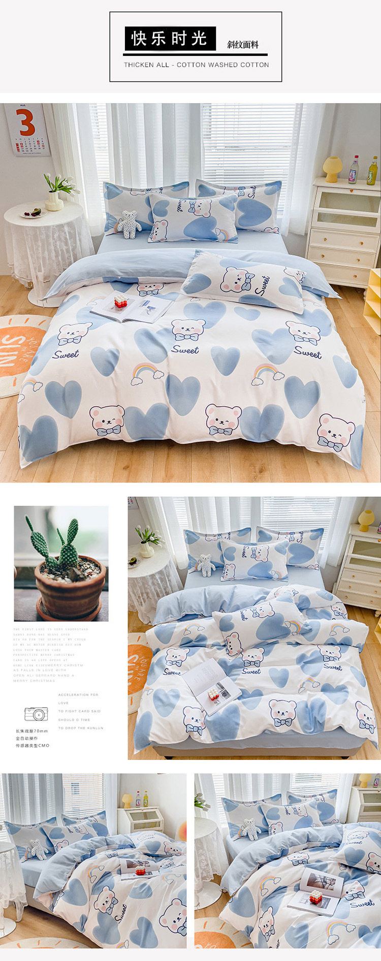 happy diary: 1.2m bed sheet three-piece set (quilt cover 150*200)