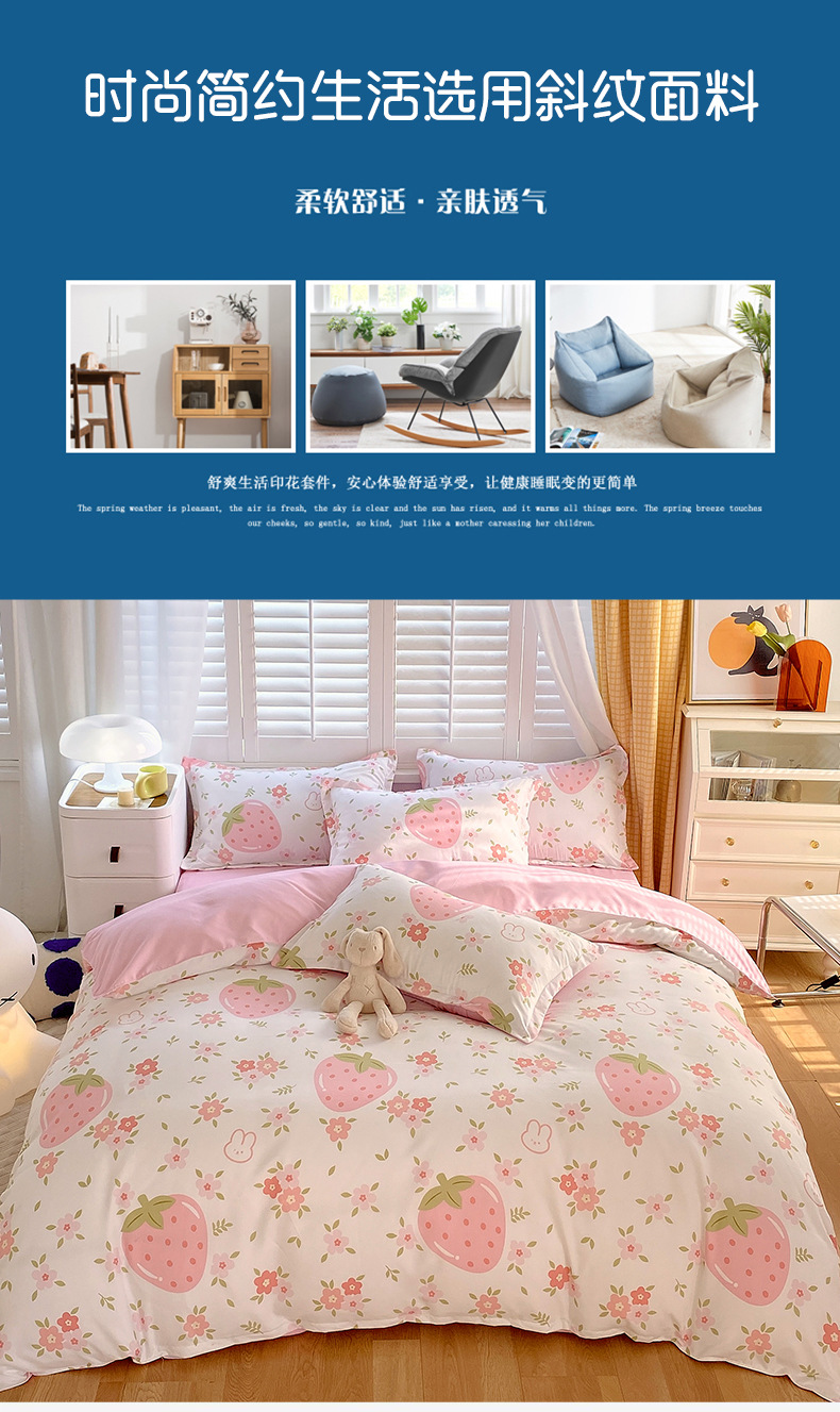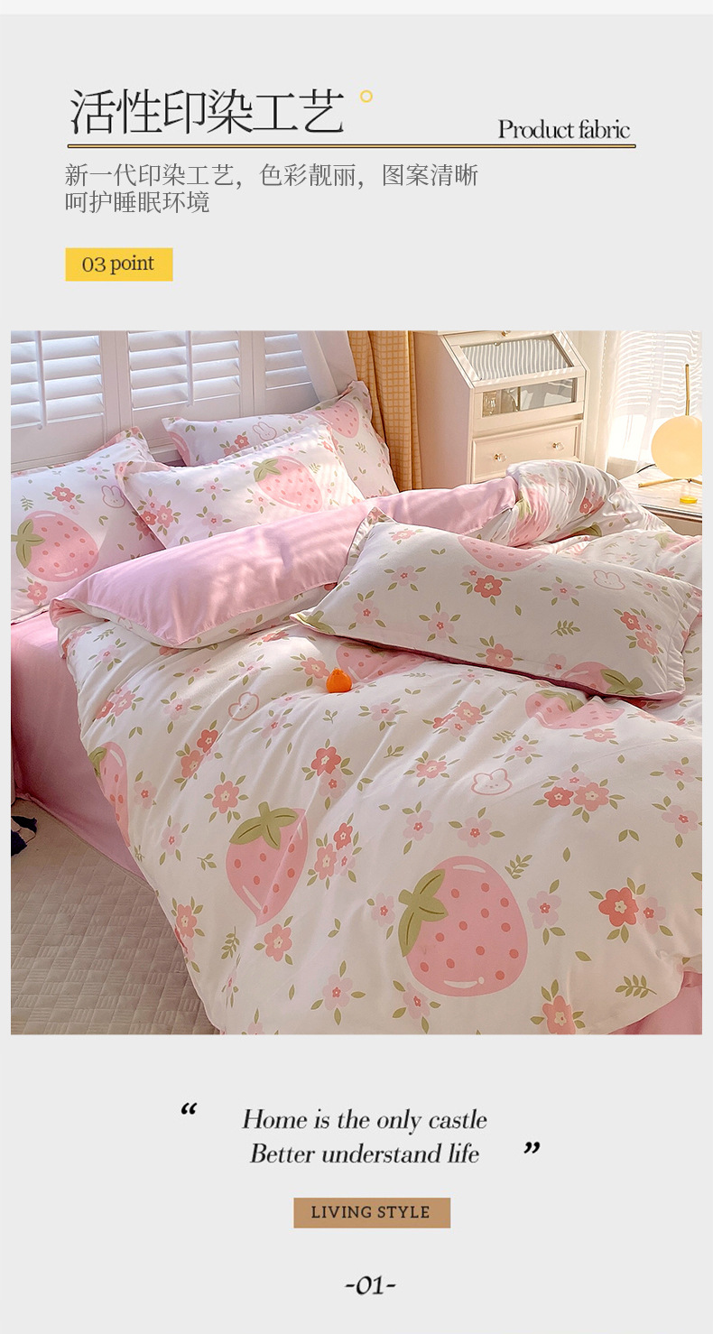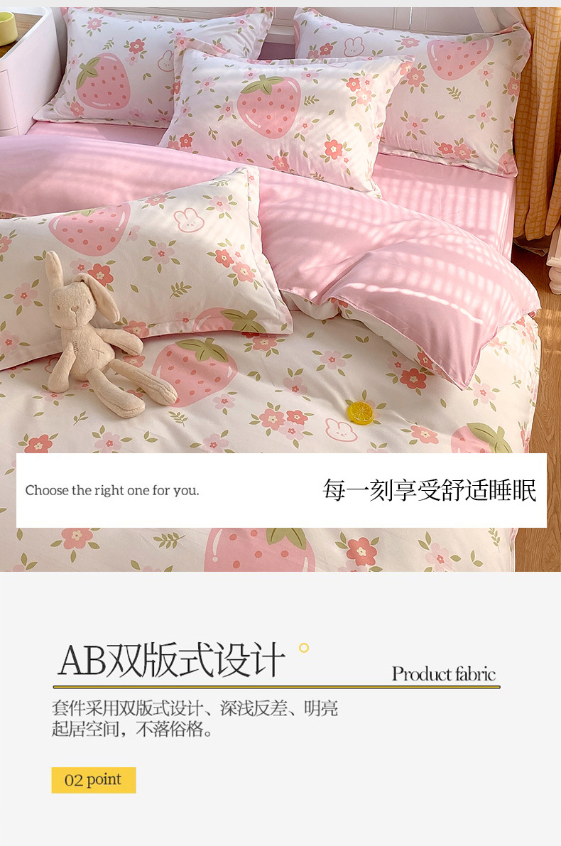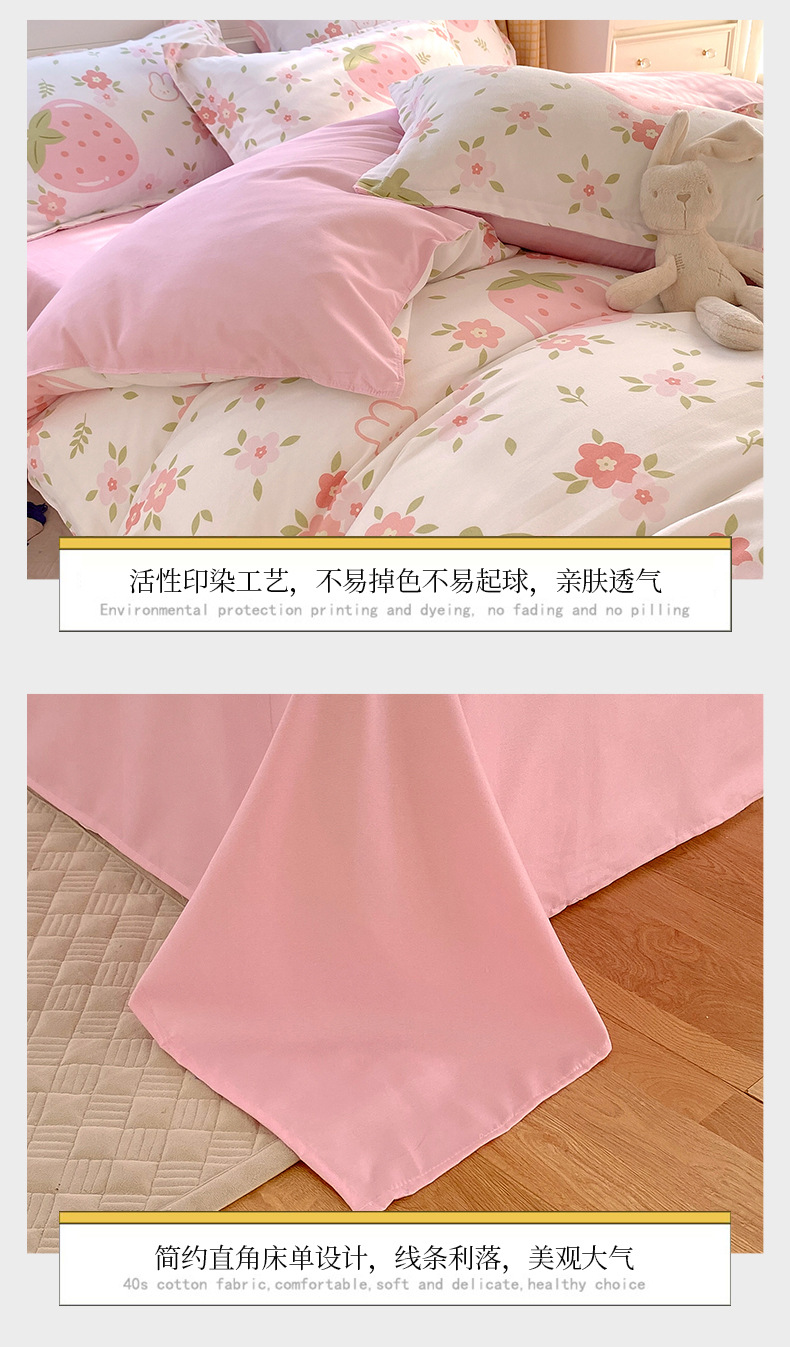 strawberry bear: 1.8m bed sheet four-piece set (quilt cover 180*220)