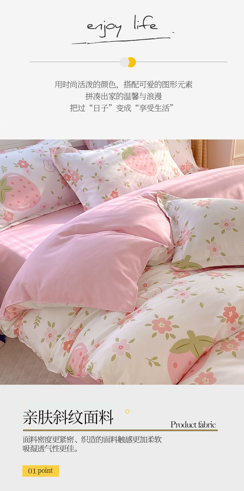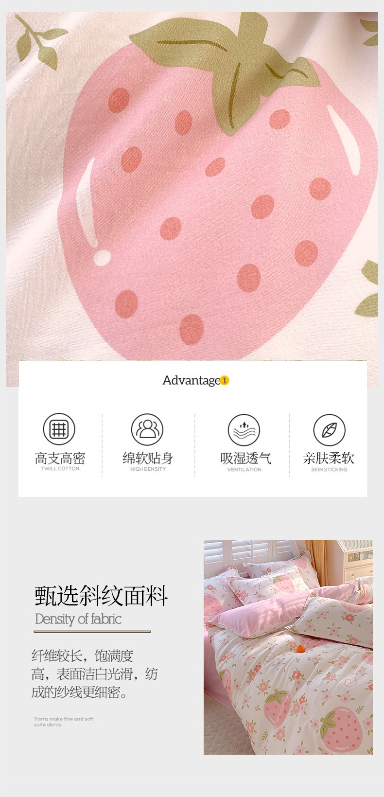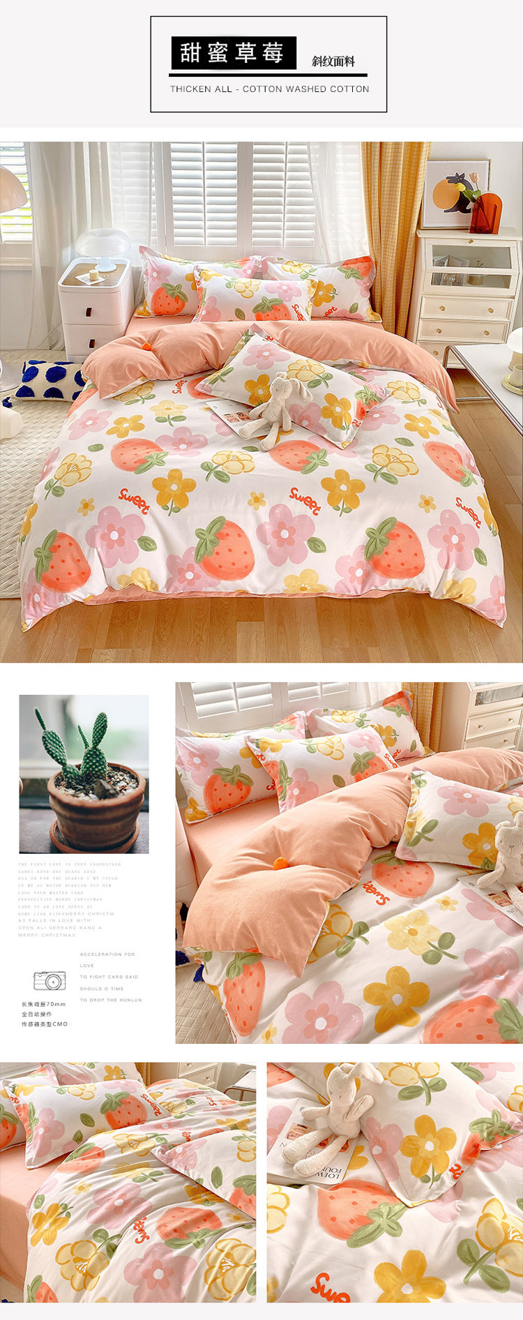 strawberry bear: 1.8m bed sheet four-piece set (quilt cover 180*220)