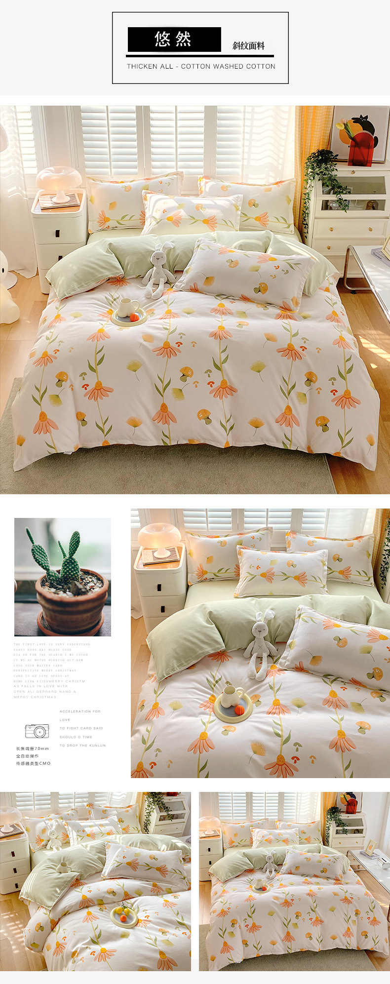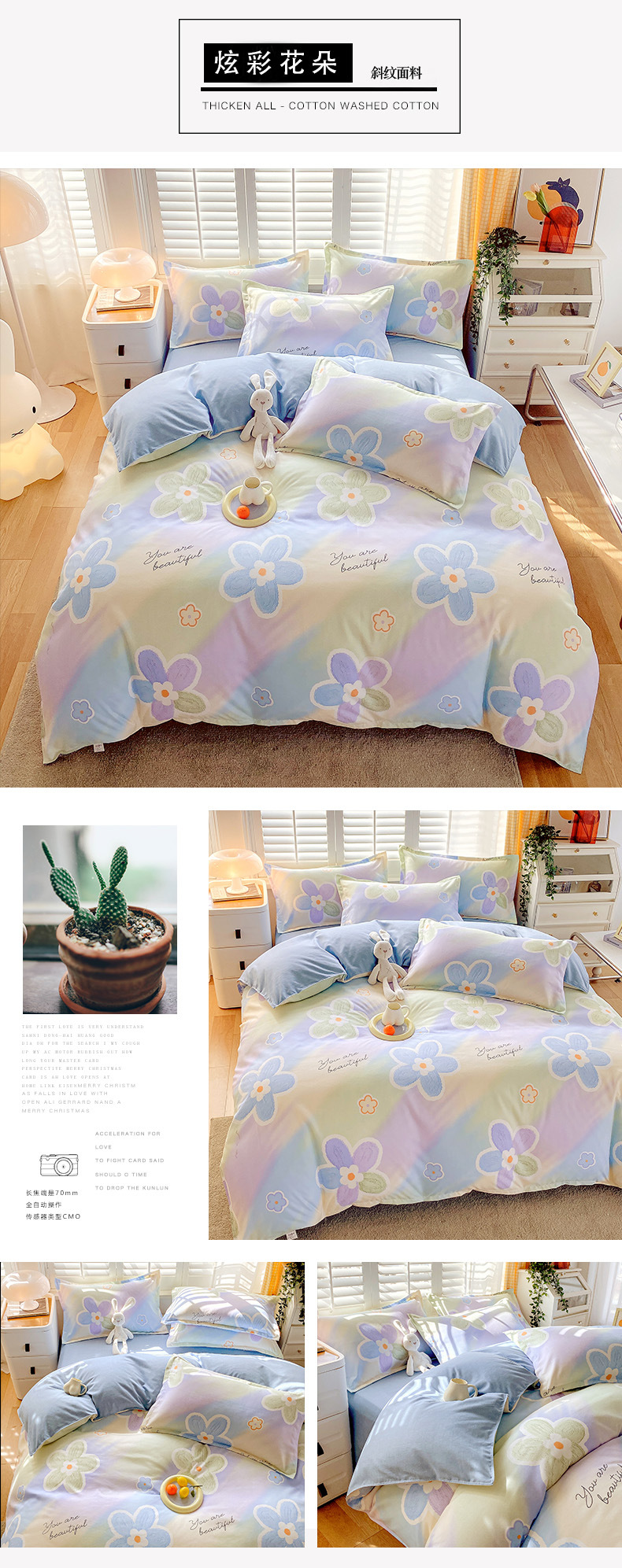 flower bunny: 1.2m bed sheet three-piece set (quilt cover 150*200)