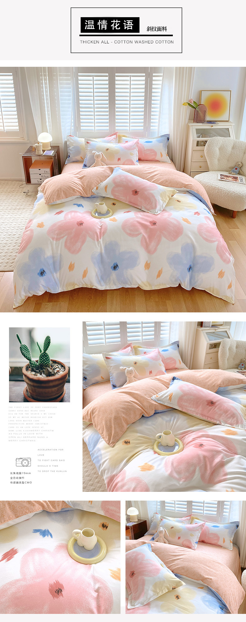 warm flower language: 1.5m bed sheet four-piece set (quilt cover 150*200)