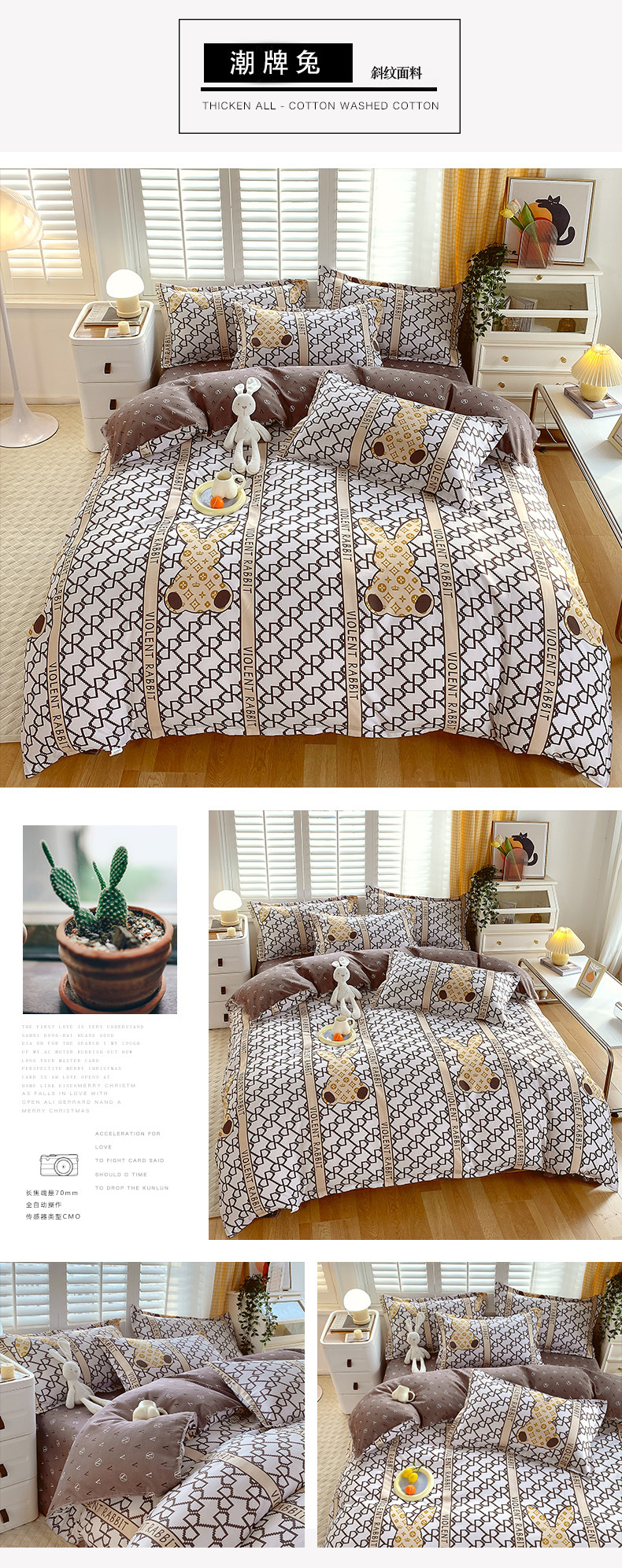 fashion brand rabbit: 2.0m bed sheet four-piece set (quilt cover 200*230)