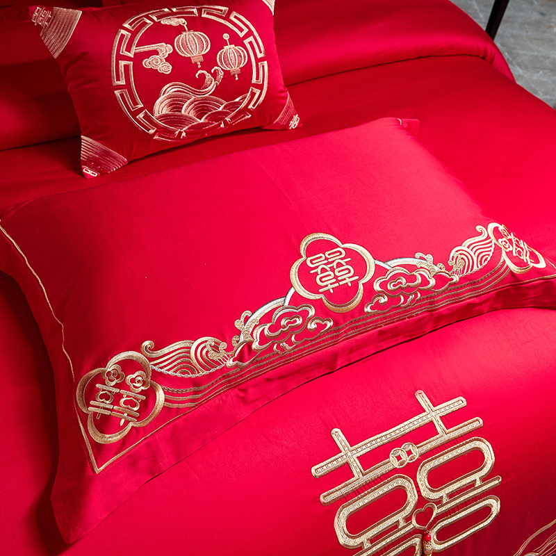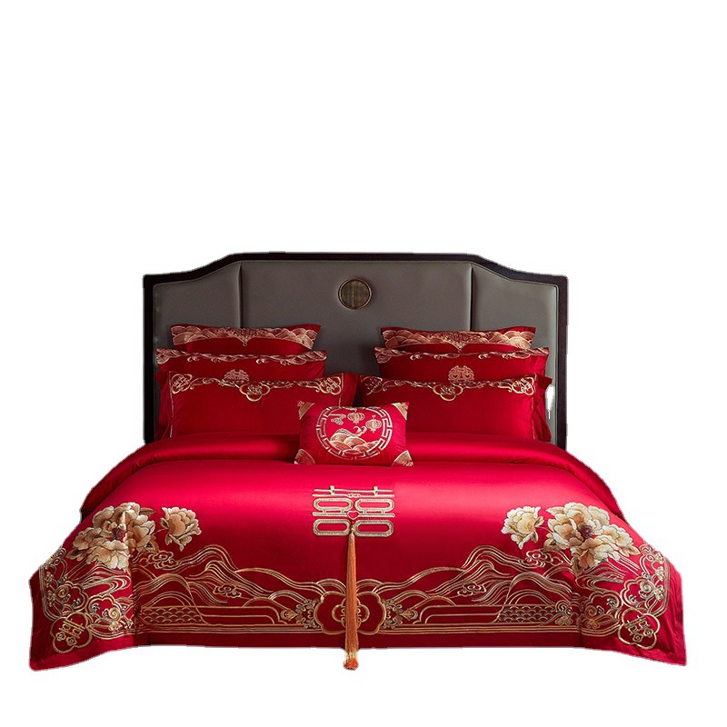 full garden spring-red: 2.0 bed four-piece set [applicable 220*240 duvet insert]]