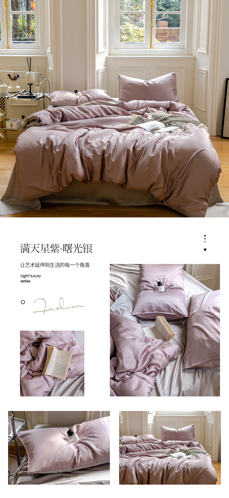 elegant purple gray: 2.0m fitted sheet four-piece set (duvet insert suitable for 220 * 240cm)