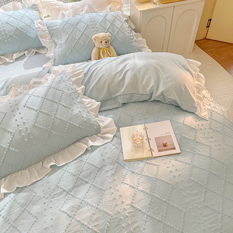 cut flower-diamond fresh blue: 2.0 m bed four-piece quilt cover 2.2*2.4m