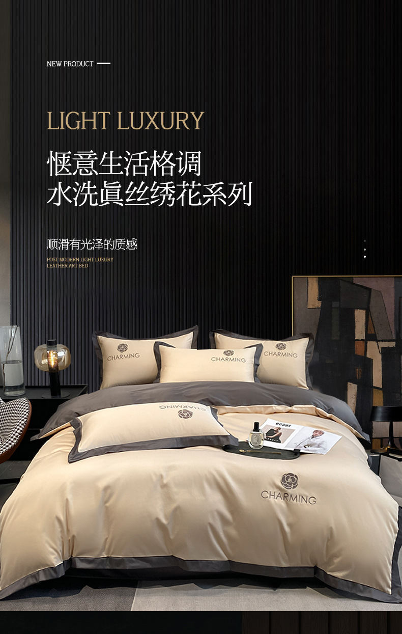 贝琳达-奶昔白-奶茶【轻奢冰丝 可裸睡】:1.5米床笠款四件套【被套200*230】