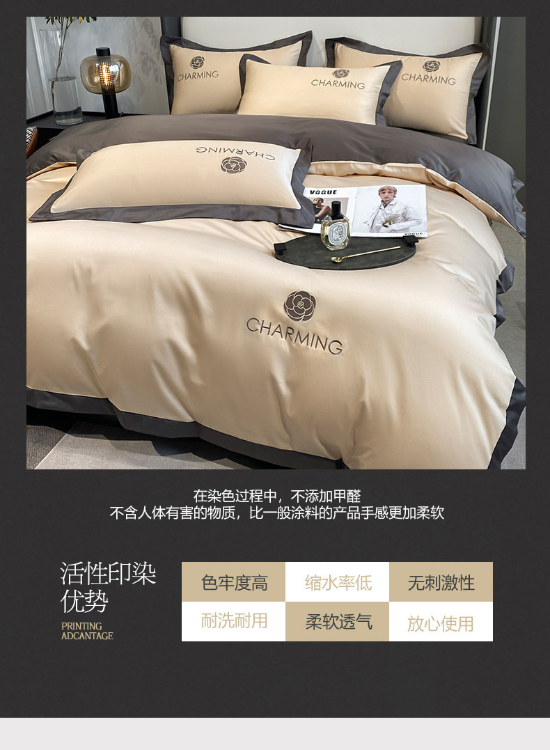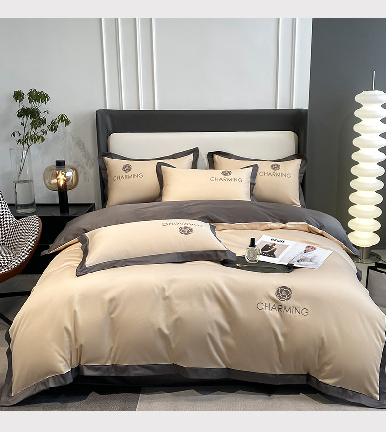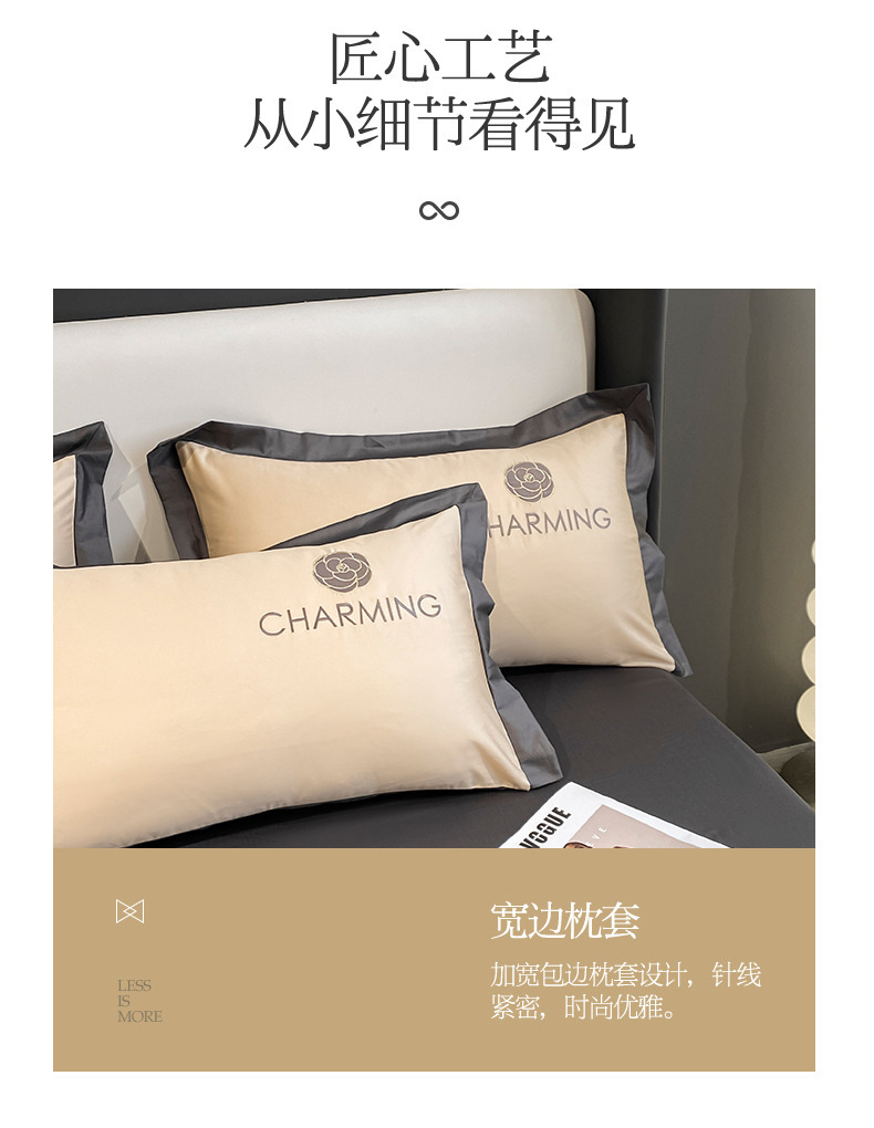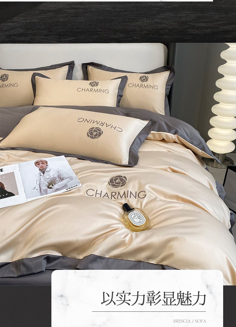 贝琳达-浅豆沙【轻奢冰丝 可裸睡】:1.8米床笠款四件套【被套200*23