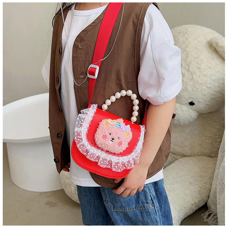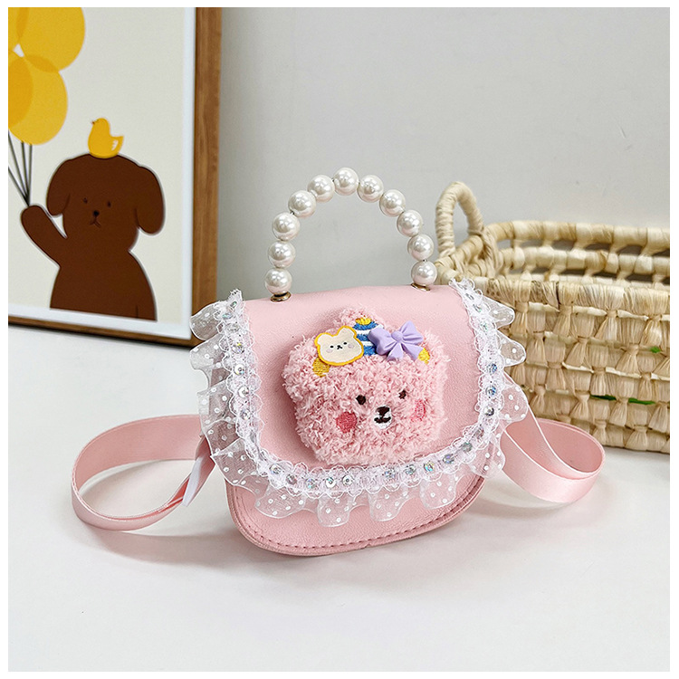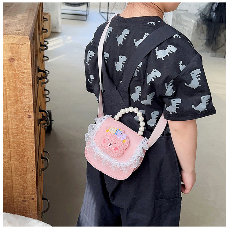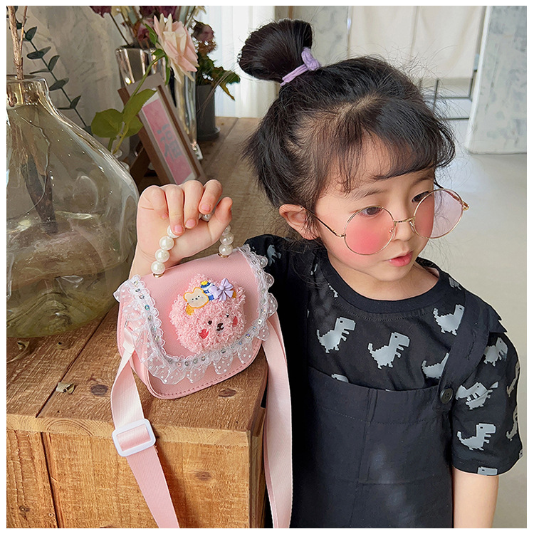 2023 new children's bags women's pearl hand lace shoulder classic style cute princess crossbody purse