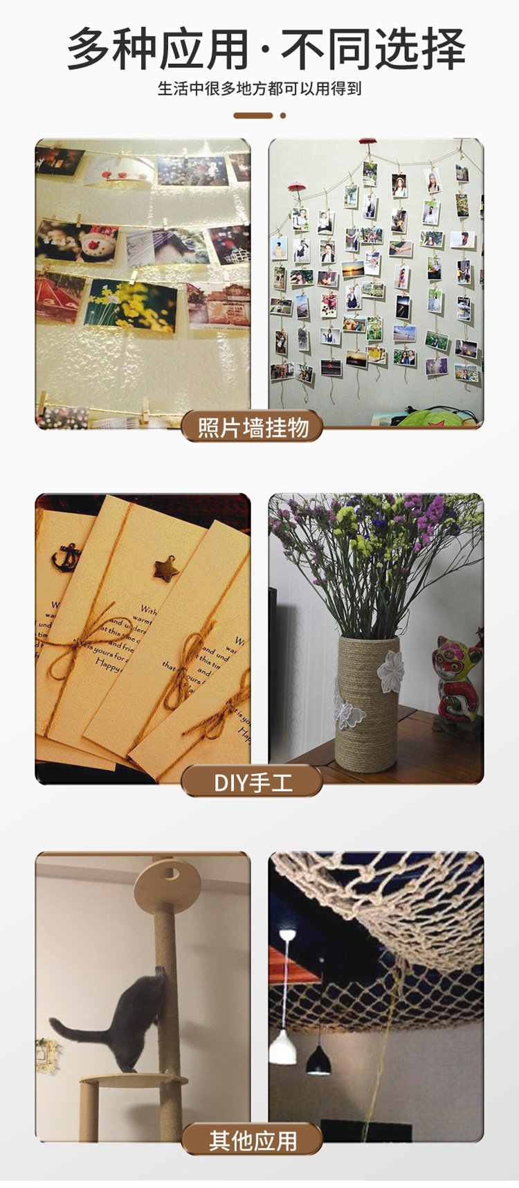 Factory Direct Sales Manila Rope Rope Handmade Hemp Rope High Quality Jute Rope Cat Climbing Frame Hemp Rope Length 50 M