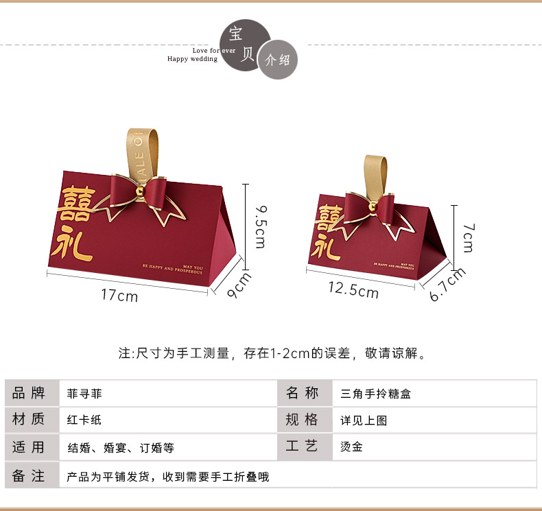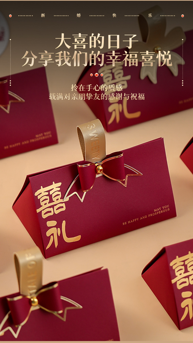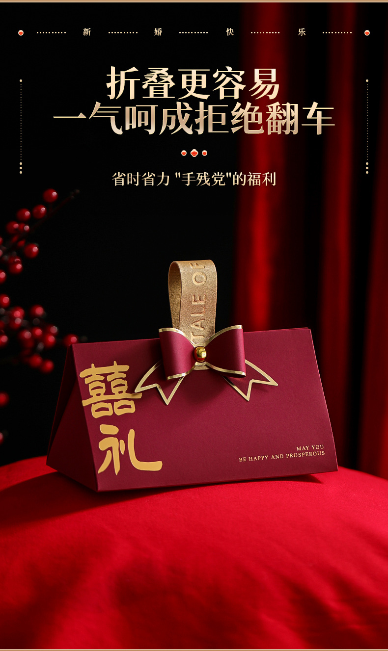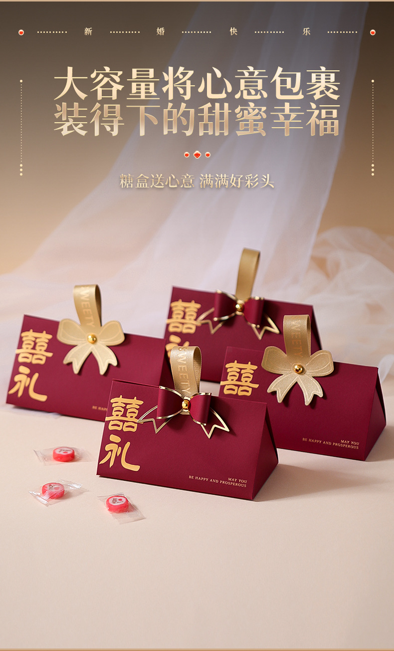 wine red bowknot_gift triangle candy box: medium 10 pack
