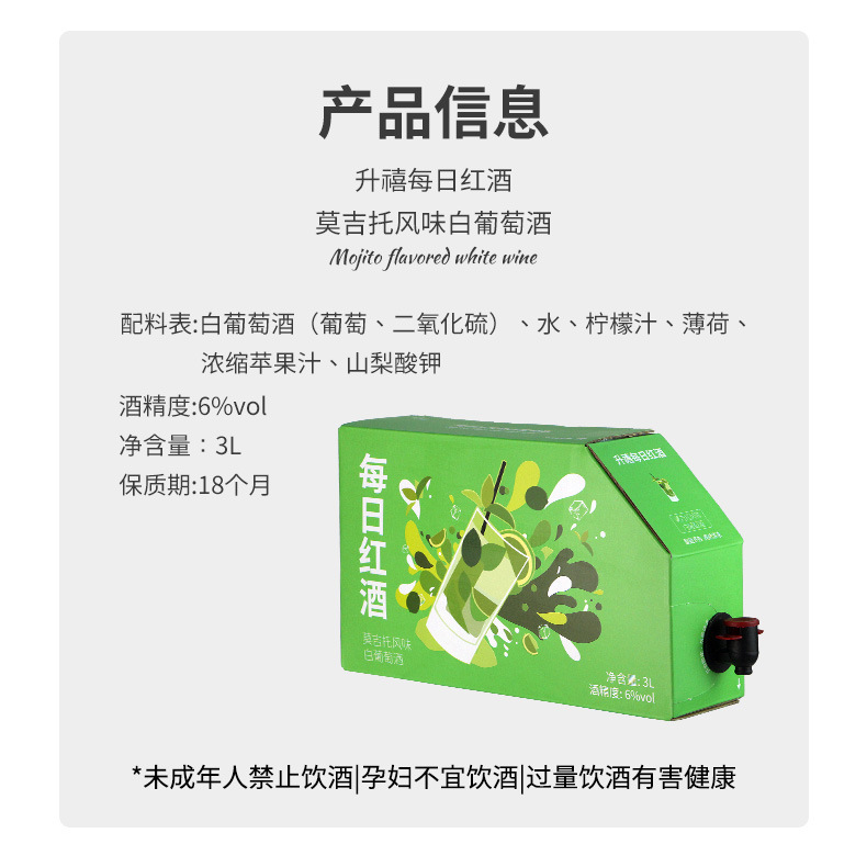 莫吉托风味白葡萄酒3L/盒