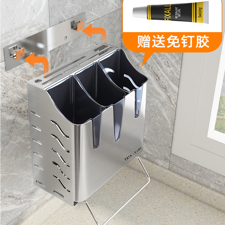 304 stainless steel kitchen knife storage rack chopsticks cage knife holder integrated storage household wall-mounted chopsticks holder