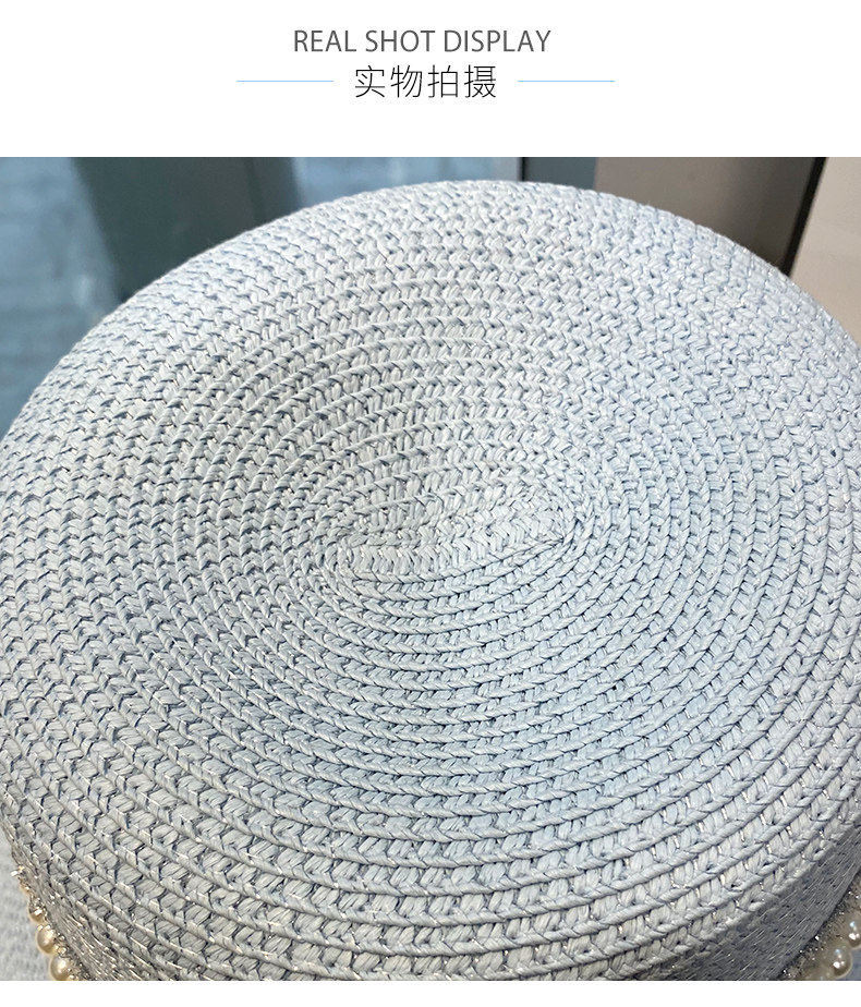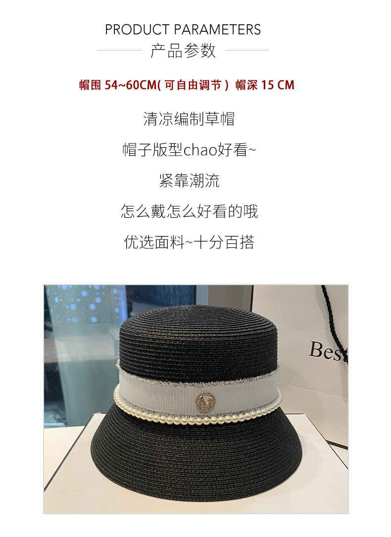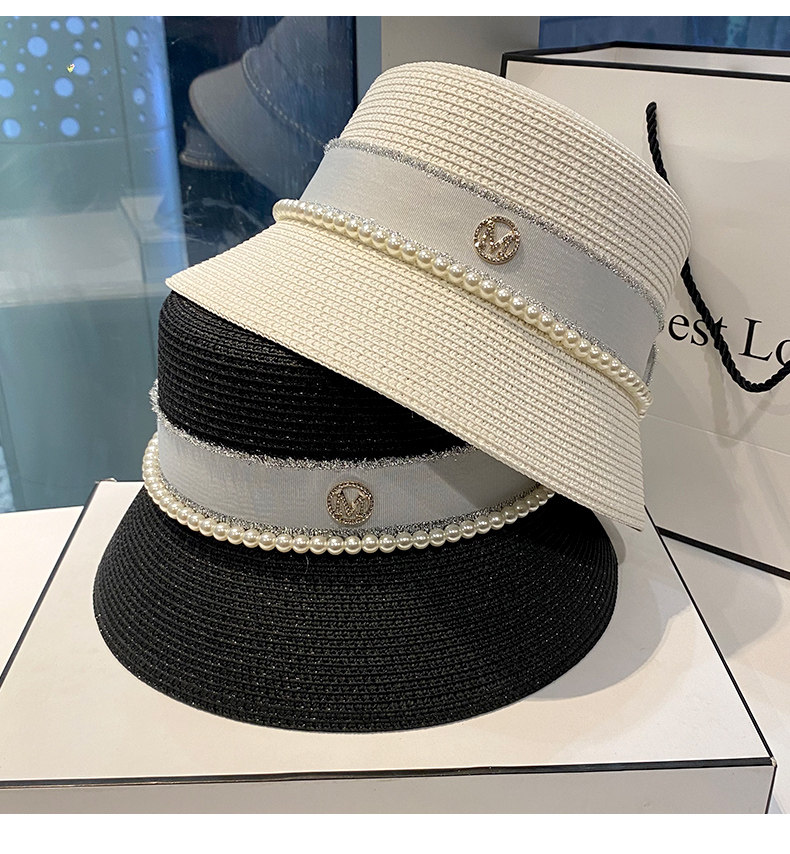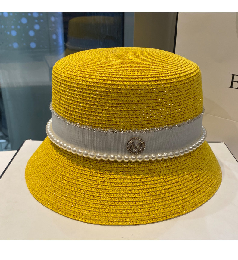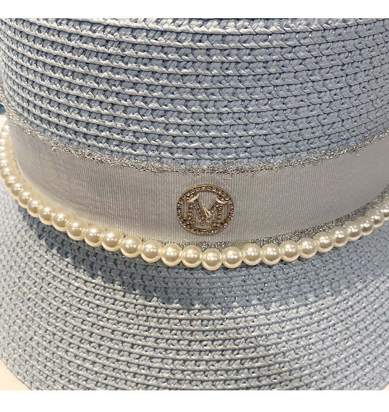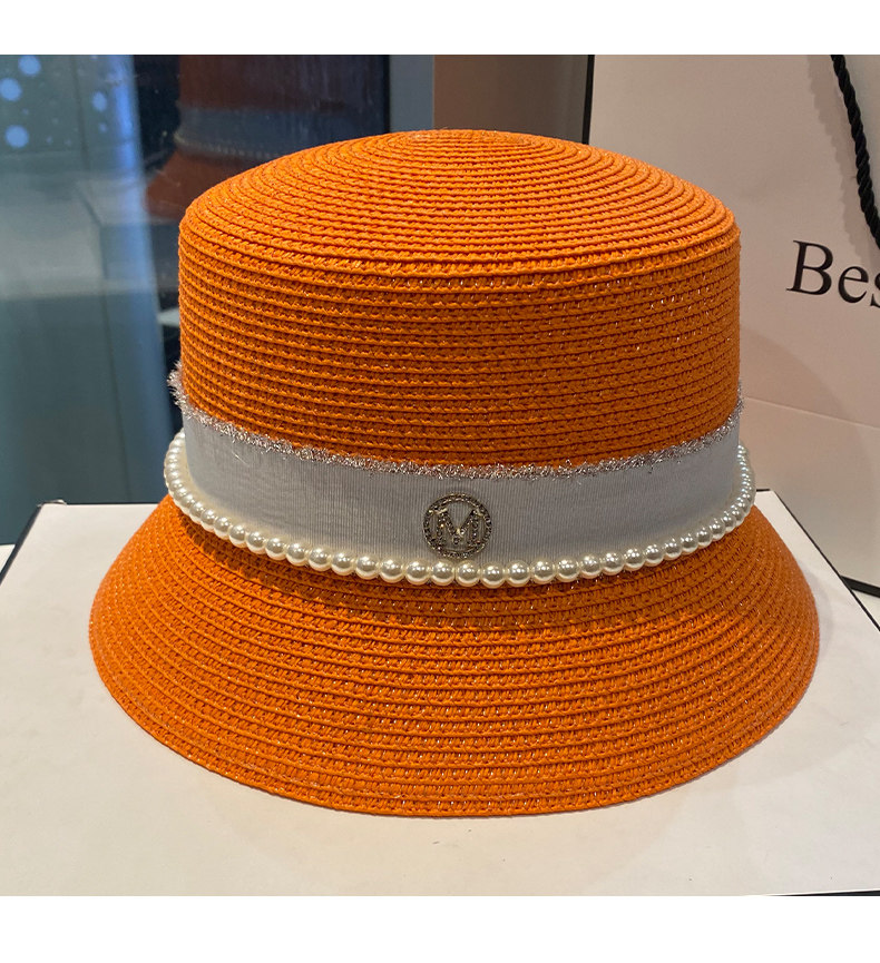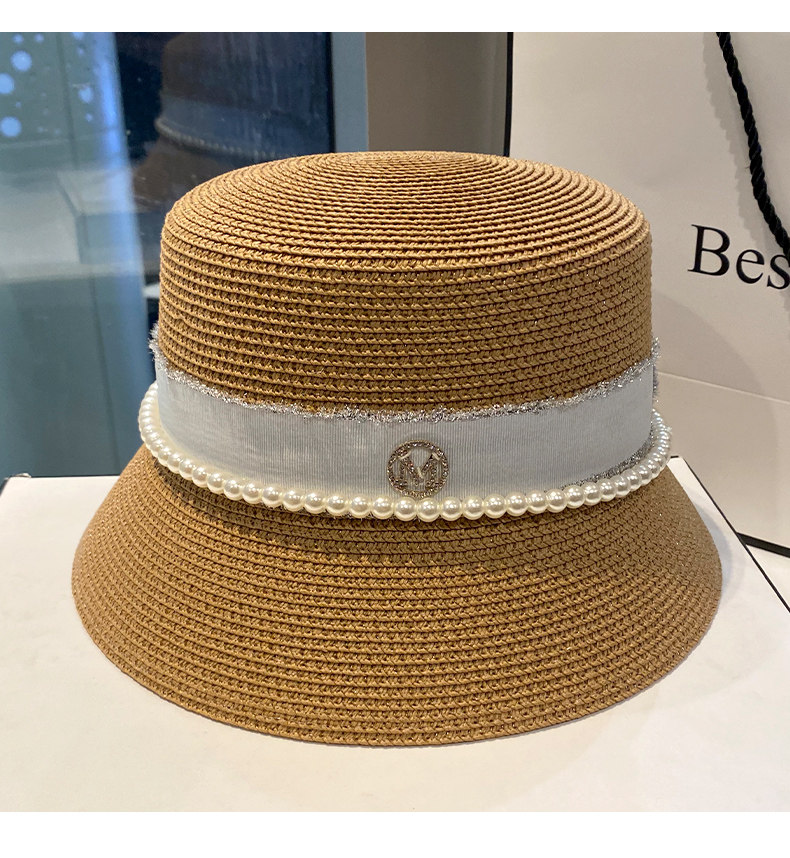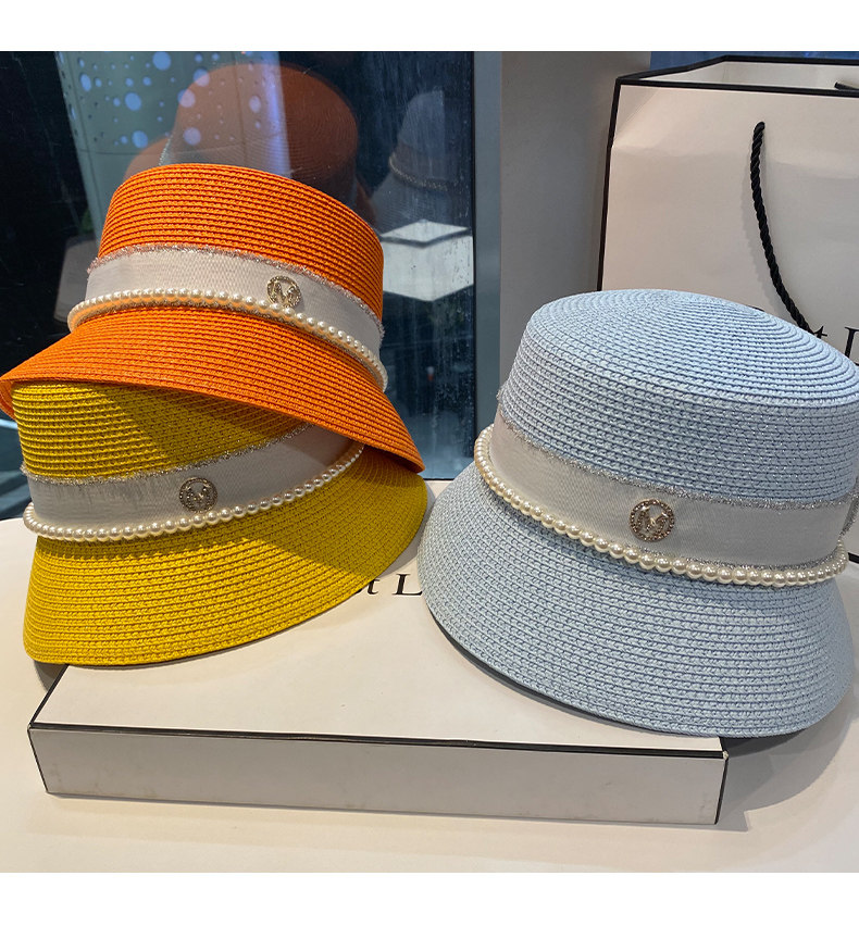 Hat Women's Korean-Style Trendy Pearl Rhinestone Bucket Hat Summer All-Matching M Standard Beach Straw Hat Sun Protection Sun Hat Women