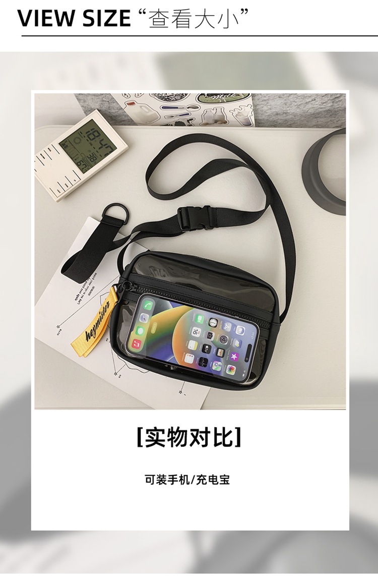 About Product:Messenger bag spring men fashion brands boys mobile phone bag lightweight Japanese small shoulder bag female functional transparent single-shoulder bag