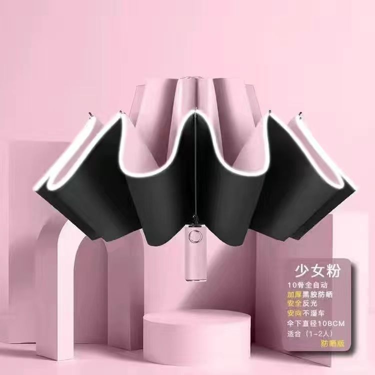 self-opening umbrella] 10 bone reverse wind and rain-pink