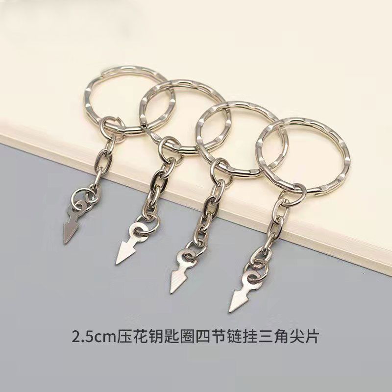 2.5cm embossed key ring four-link chain hanging triangle tip; 10