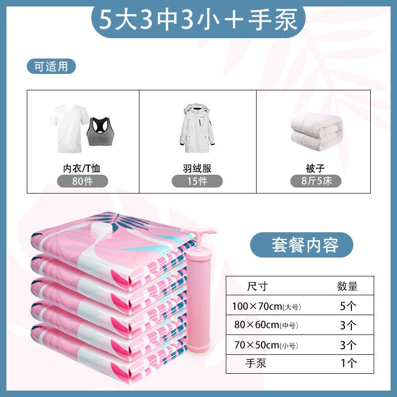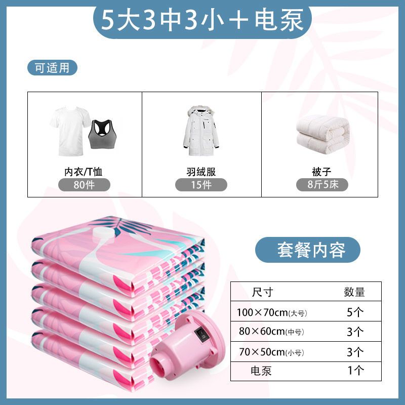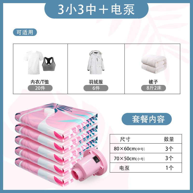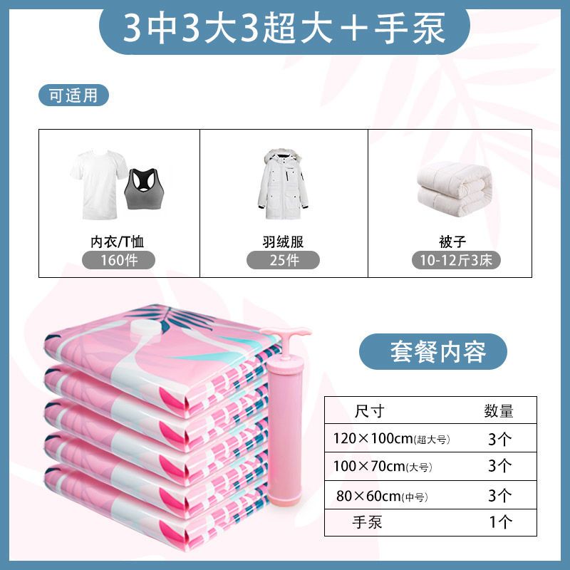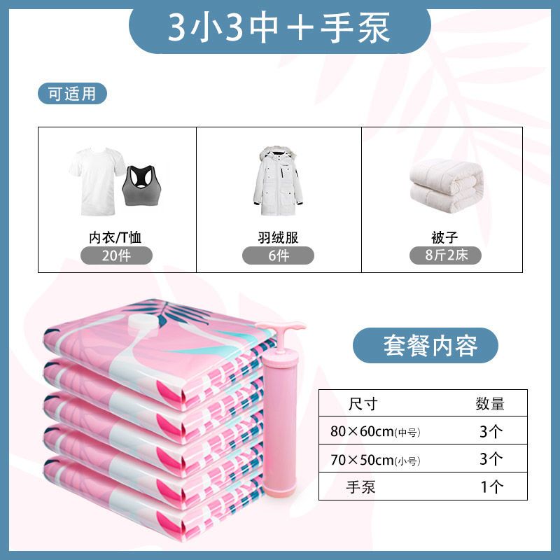 3 medium 3 large 3 super large [dormitory storage]; no pump + bag [tropical rainforest]]