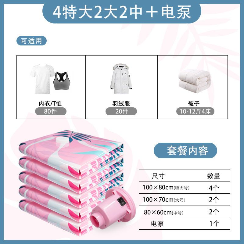 4 extra large 2 large 2 medium [dormitory storage]; no pump + bag [tropical rainforest]]