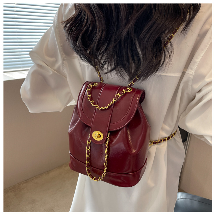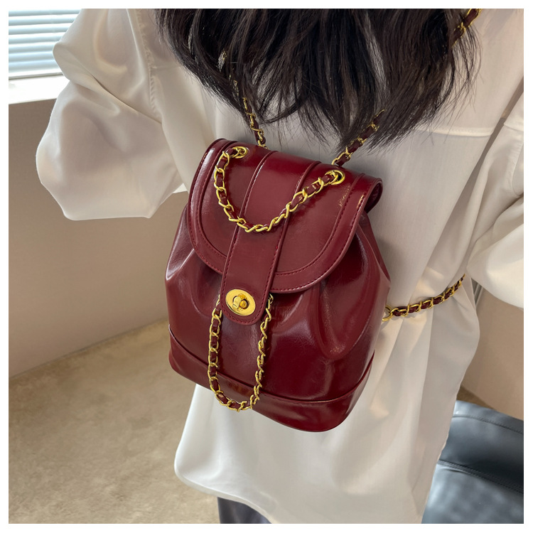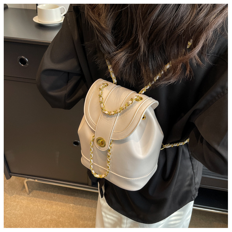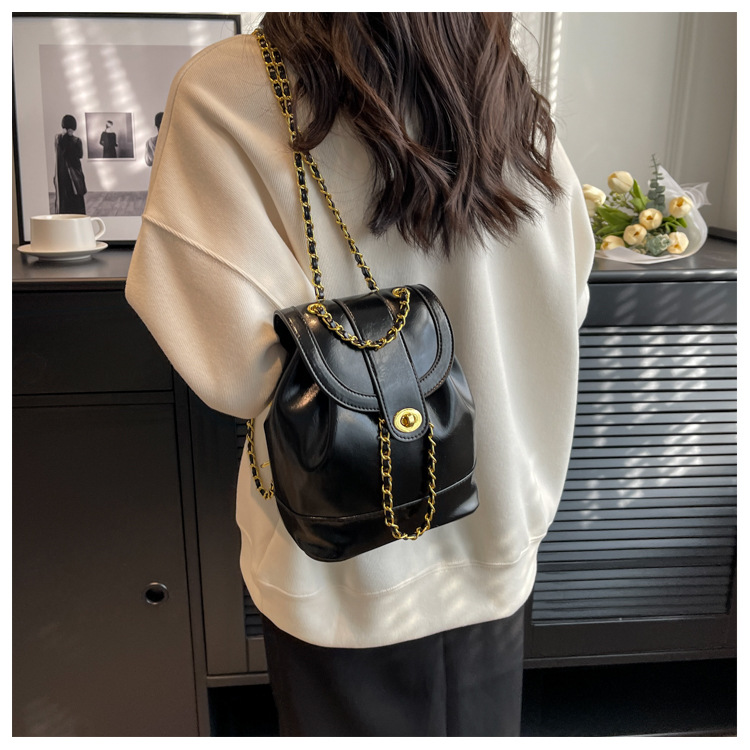 About Product:Spring New Classic style backpack large capacity student schoolbag oil wax leather texture chain backpack crossbody women's bag