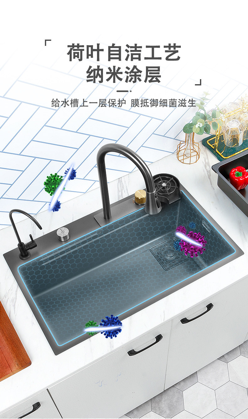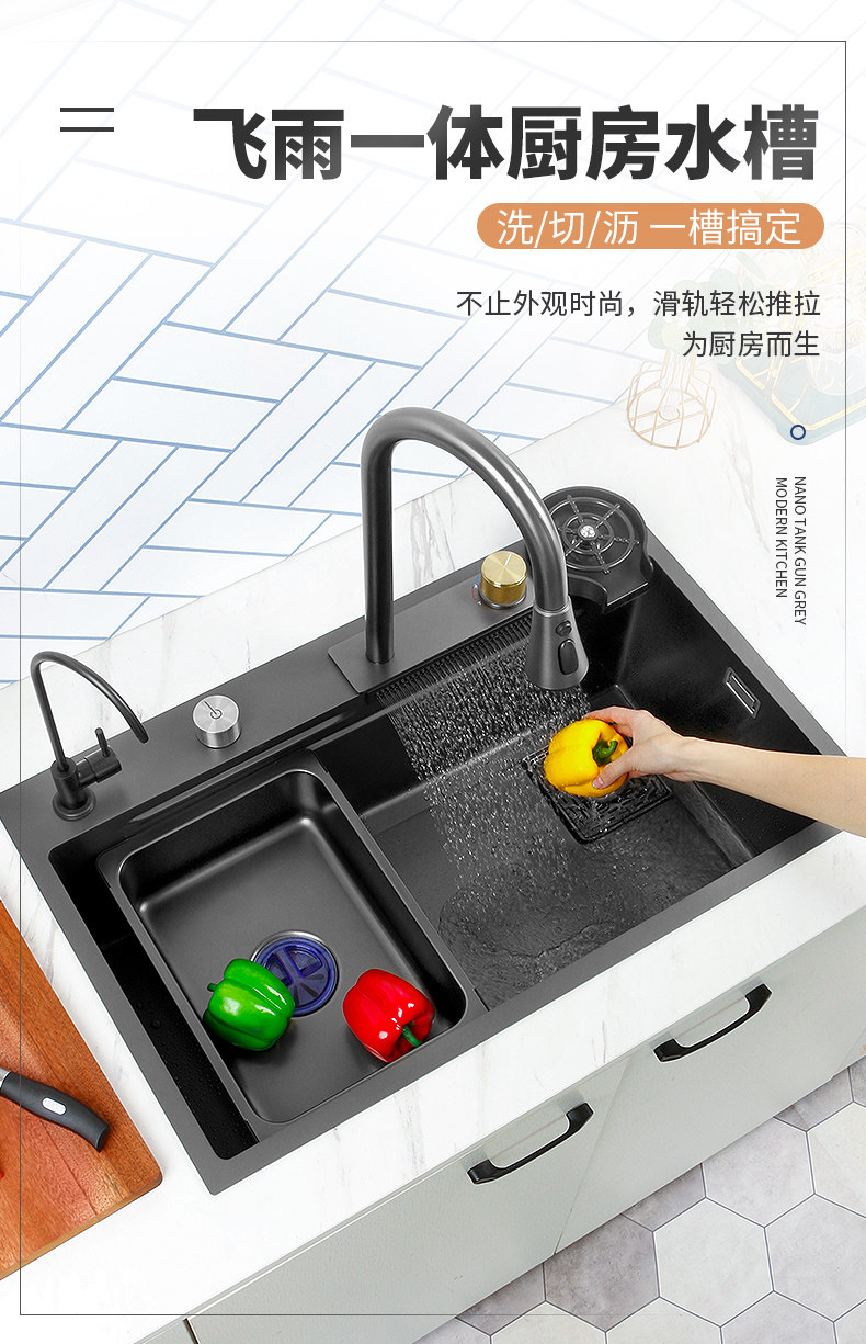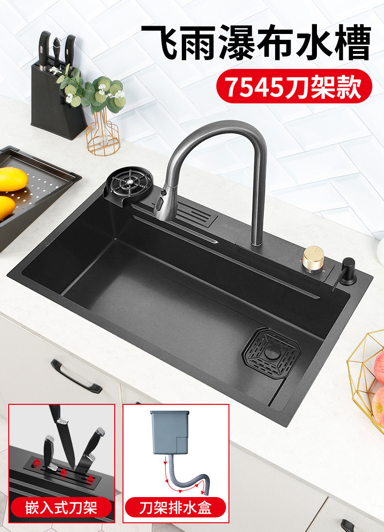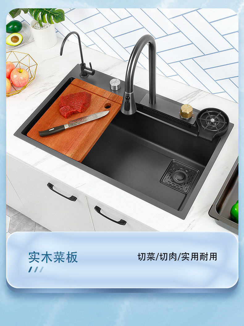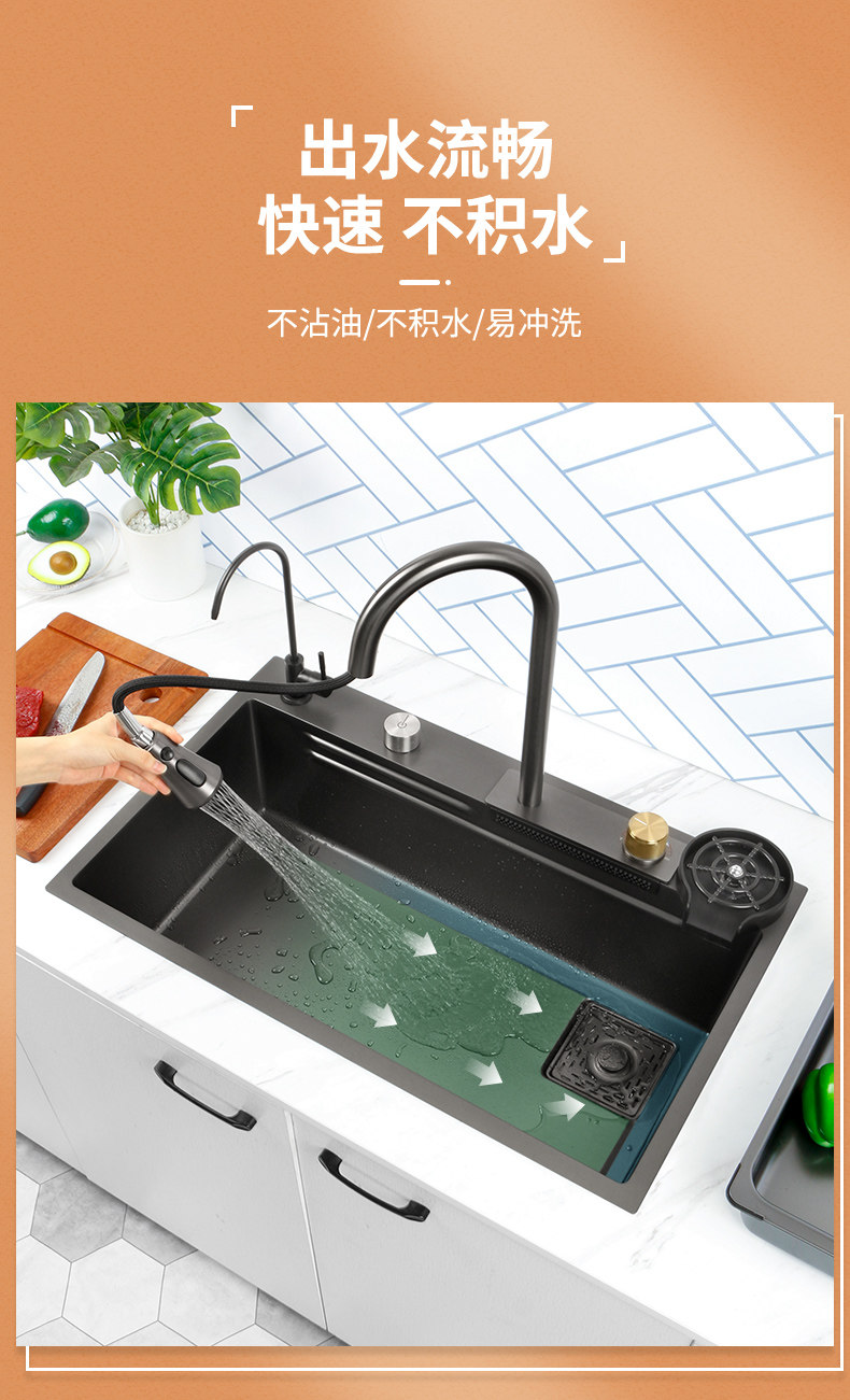 Feiyu Sink Kitchen Waterfall Faucet Washing Basin Nano 304 Stainless Steel Sink Net Red Sun Style Large Single Sink