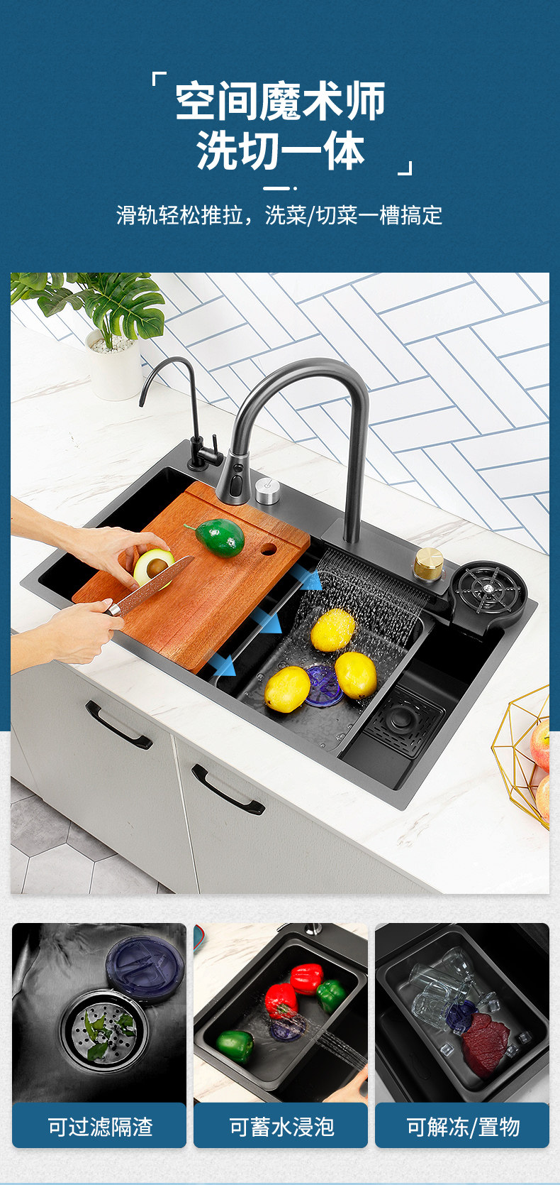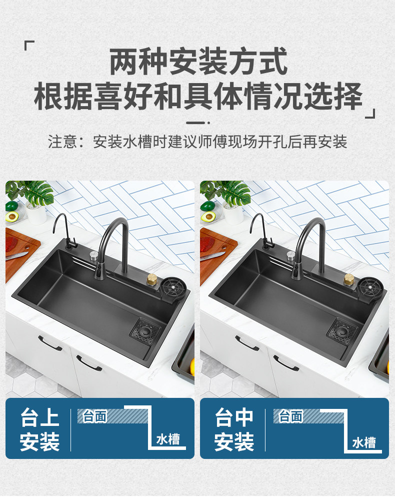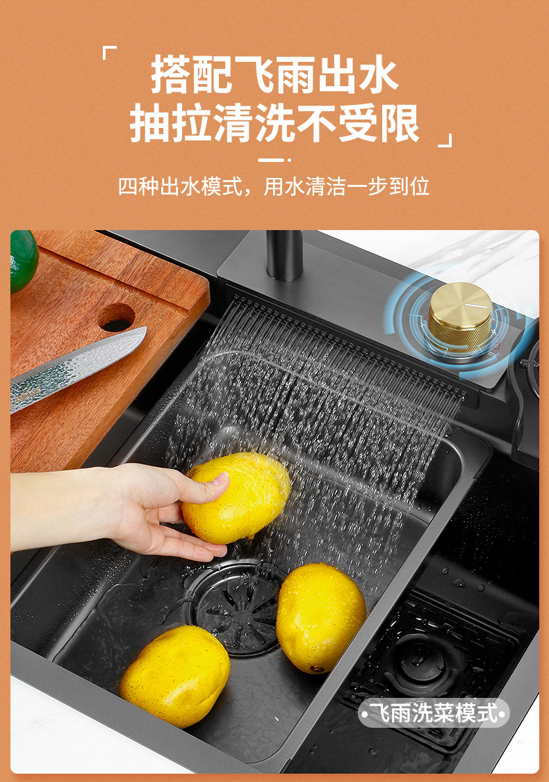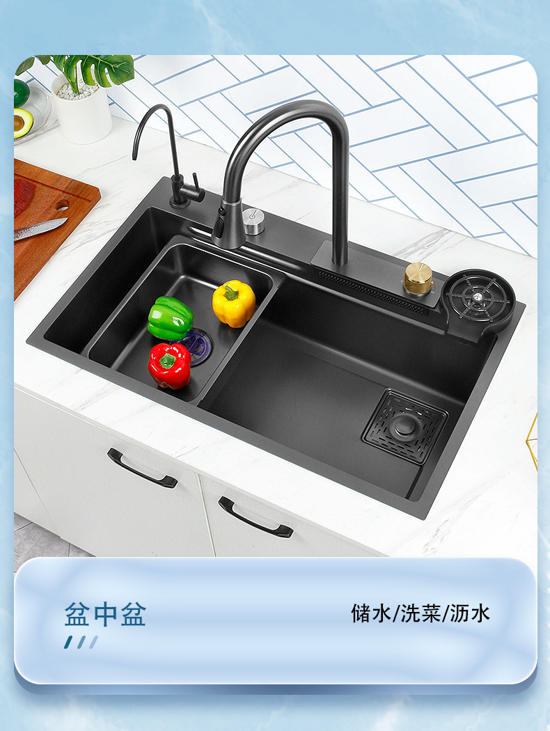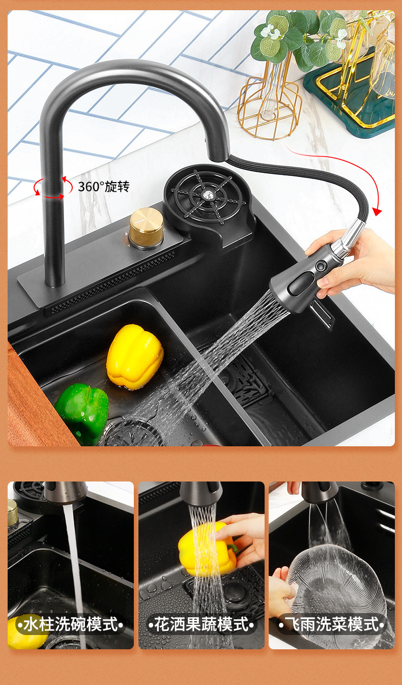 Feiyu Sink Kitchen Waterfall Faucet Washing Basin Nano 304 Stainless Steel Sink Net Red Sun Style Large Single Sink