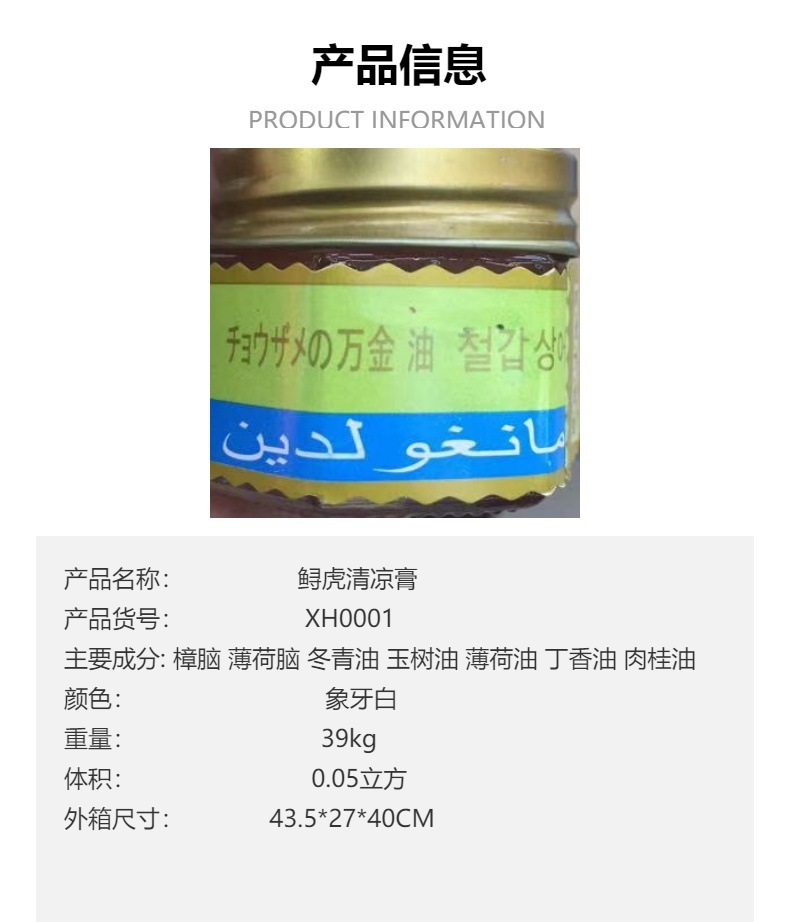 for export only factory direct sales for foreign trade sturgeon tiger cooling ointment refreshing anti-itching mosquito repellent vangener cream